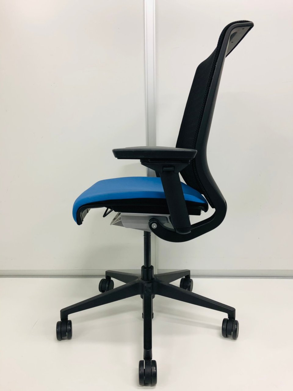 快適な座り心地に不可欠な調節機能である、上下昇降、座面の奥行き調整、リクライニングなどを備えており、操作もわかりやすく好評です。 特に、座面の奥行きは、座面下の左右に通った細いバーで調整でき、座ったままで軽やかに滑るように調整が可能です。 価格面では、新品では高めですが、中古は流通も多く、定価の3割前後の価格で高級チェアの座り心地を手に入れることができます!
