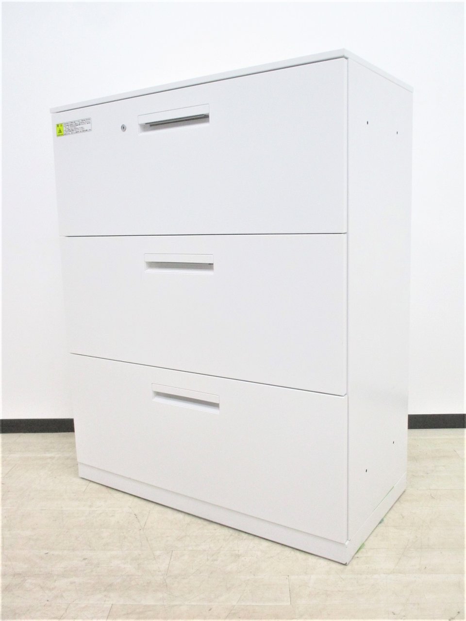 【ファイル収納に便利な引出し型キャビネット!】■ウチダ(UCHIDA) HSシリーズ 3段ラテラル書庫 ホワイト ※日焼け・キズありのためお安く!