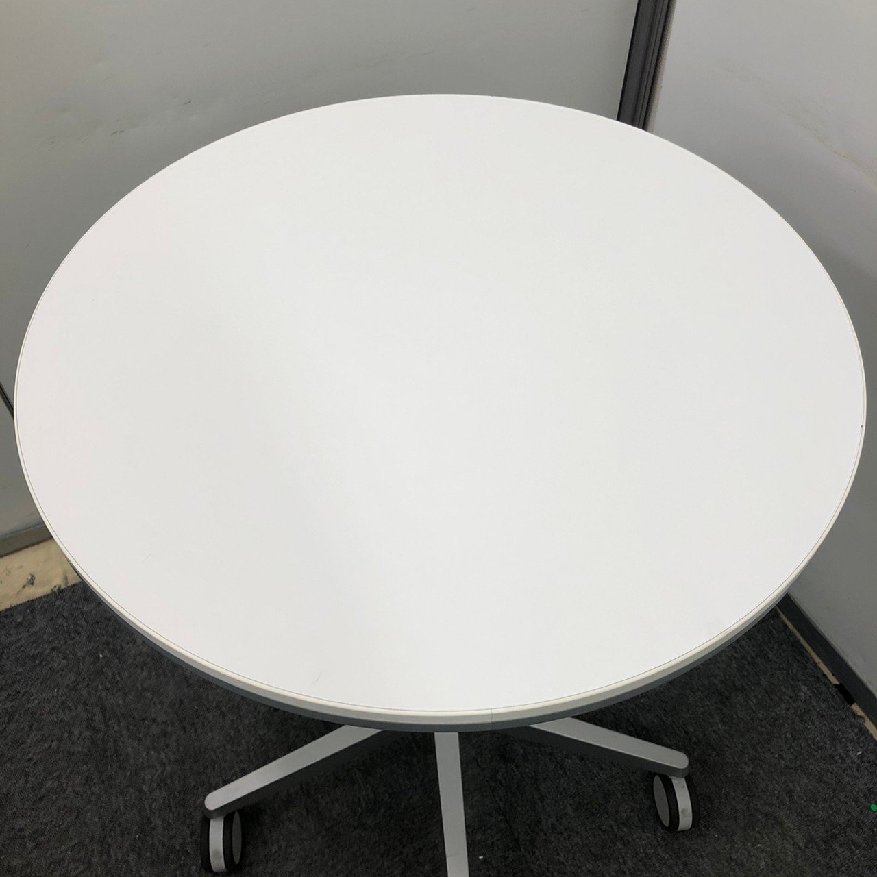 オカムラ製 ホワイト 珍しい上下昇降丸テーブル!!- なんば日本橋店