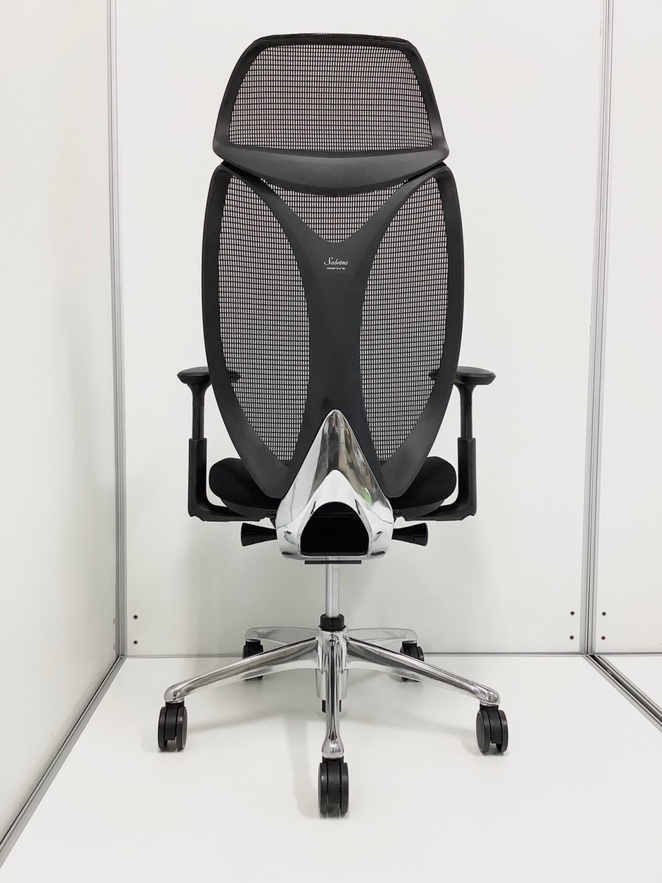 【前傾チルト付・流れるような美しいフォルムの最高級メッシュチェア!】■オカムラ(okamura)製 サブリナ(Sabrina) 肘付き エクストラハイバックチェア 背面メッシュ ■可動肘・ヘッドレスト・ハンガー付き ■ブラック【オフィスにもご自宅用にも人気の一品!】