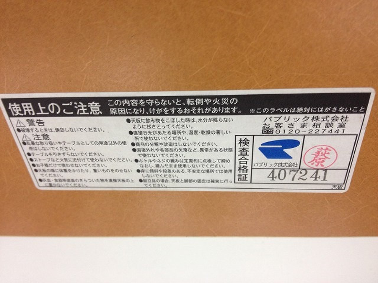 - 一部不具合あり天板歪み、アジャスター無し、キャスター使用不可ようなそのテーブルの本来の効用を果たすための機能以外の一部が使用不可な状態。(例、キャスターロッ ク機能使用不可、棚板無し等がある。)
