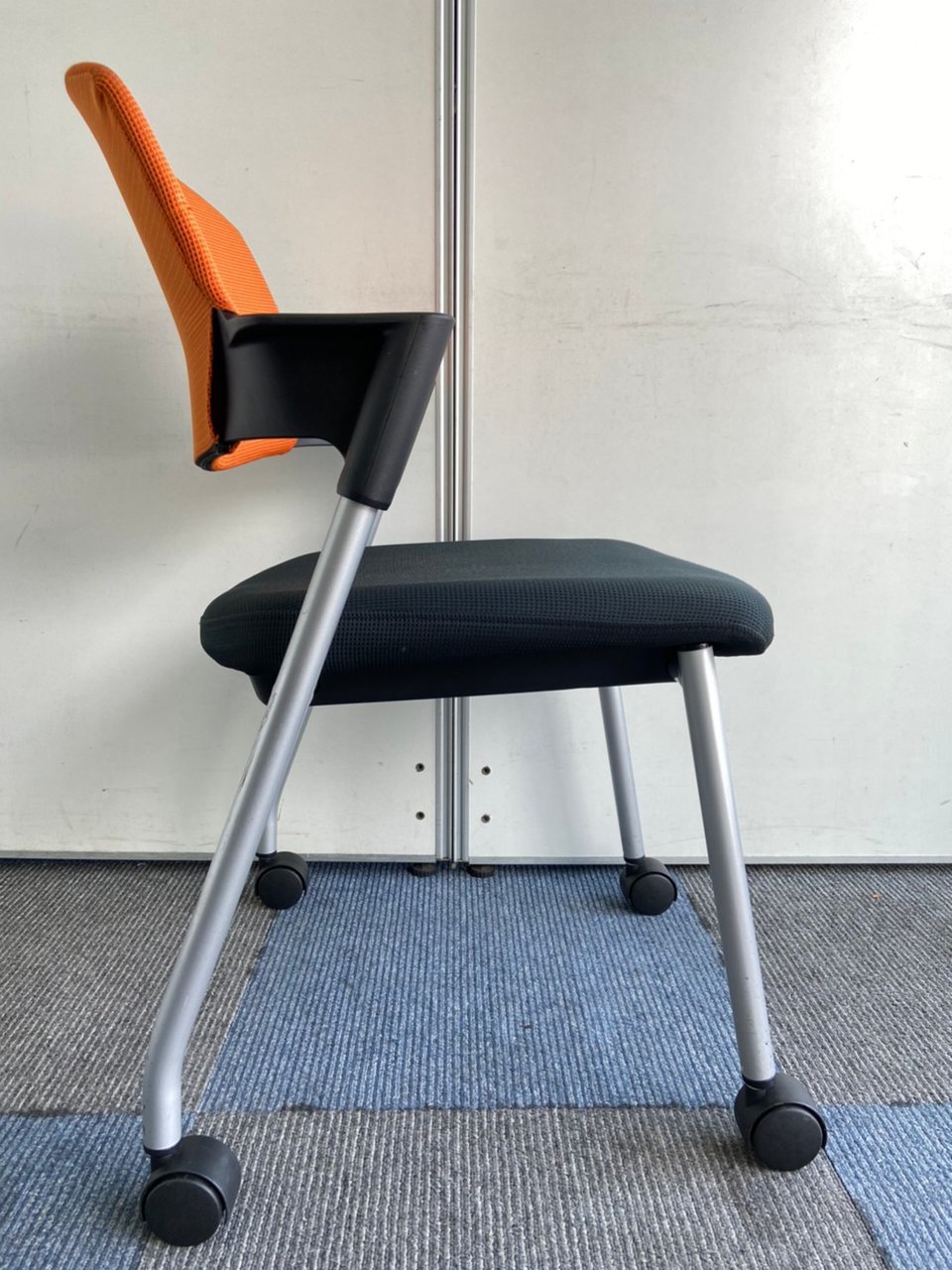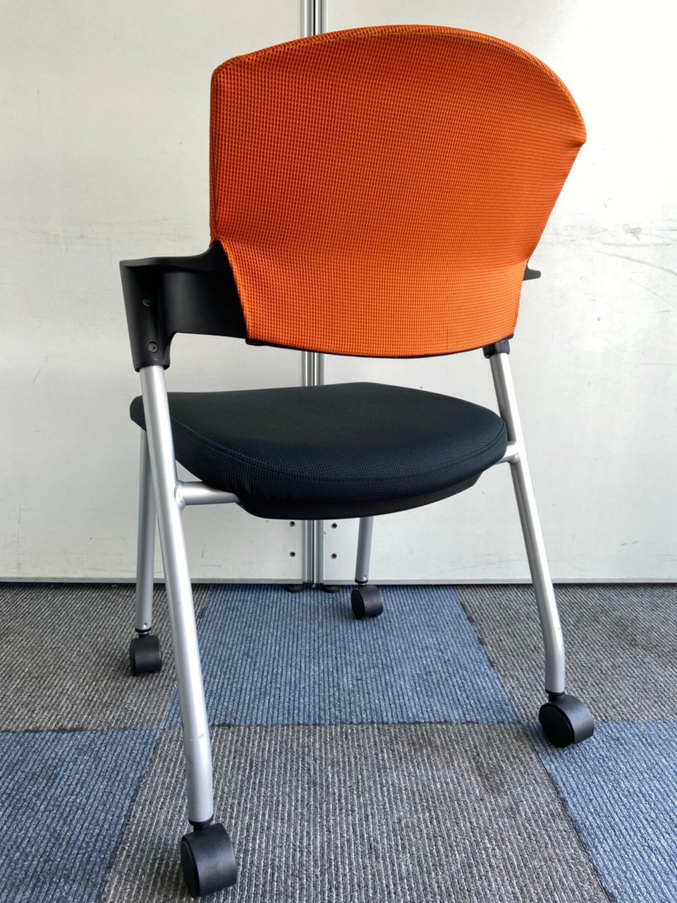 【シンプルスマートなスタッキングチェア!】■コクヨ(KOKUYO) プロッティ(Protty)チェア スタッキングチェア ミーティングチェア ■肘付き キャスター付き ■オレンジ【2505】弊社使用欄【A01018053】