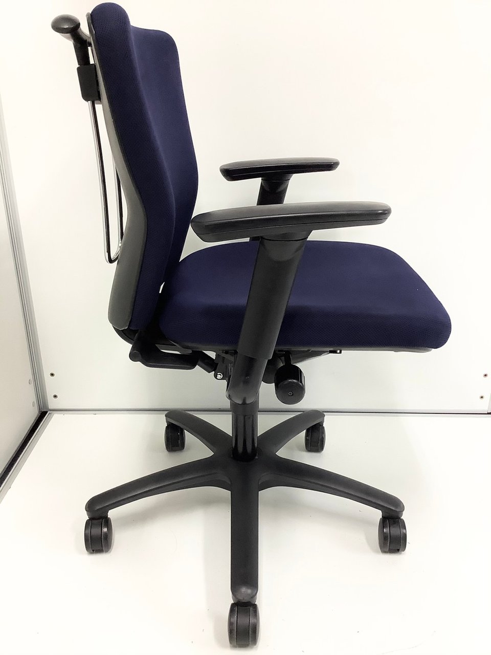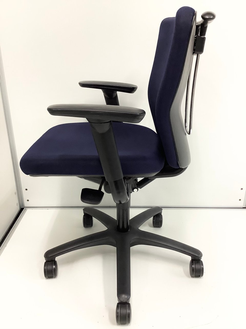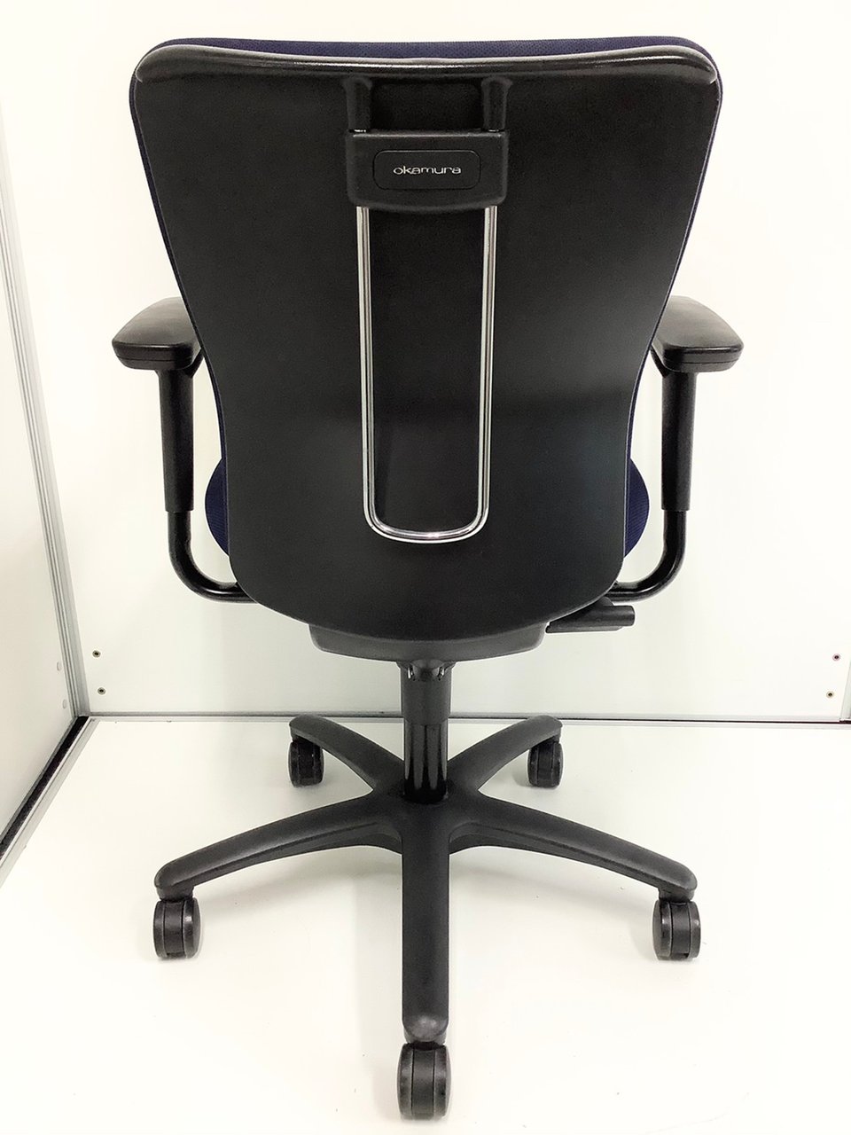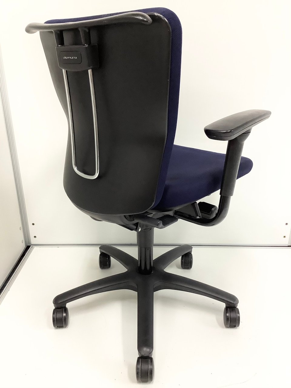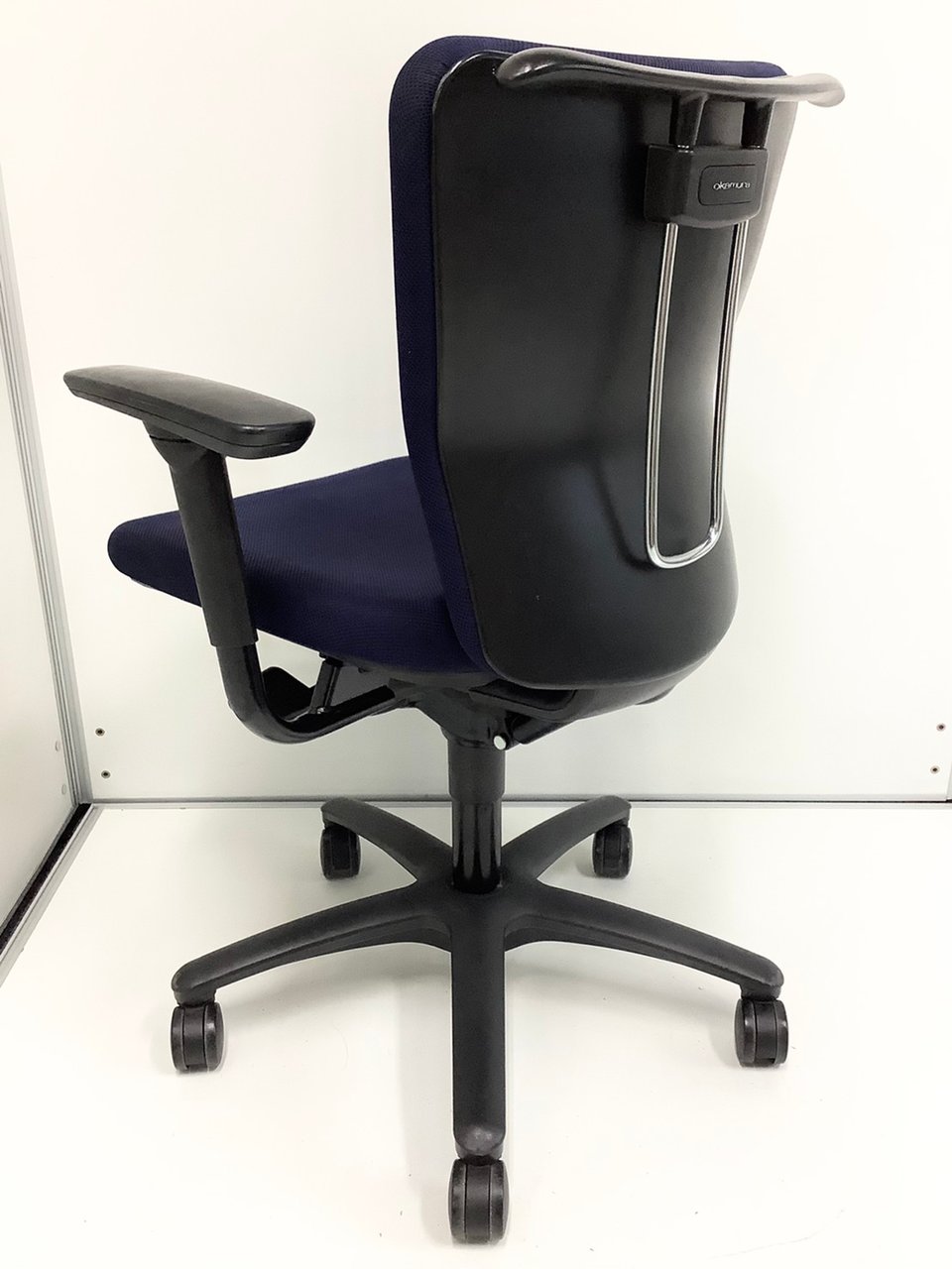 定番のオカムラ製のチェアが入荷!厚めのクッションで座り心地抜群! ■オカムラ/カロッツァ/ブルー ブラックシェル リング肘