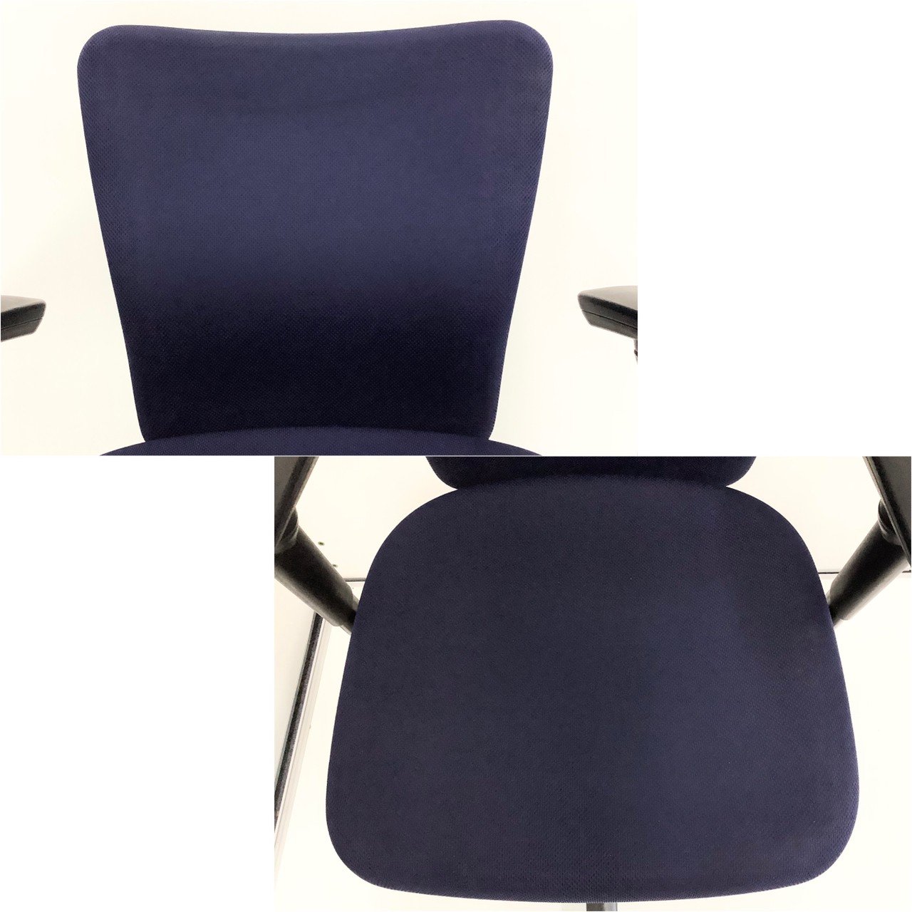 定番のオカムラ製のチェアが入荷!厚めのクッションで座り心地抜群! ■オカムラ/カロッツァ/ブルー ブラックシェル リング肘 ハンガー付