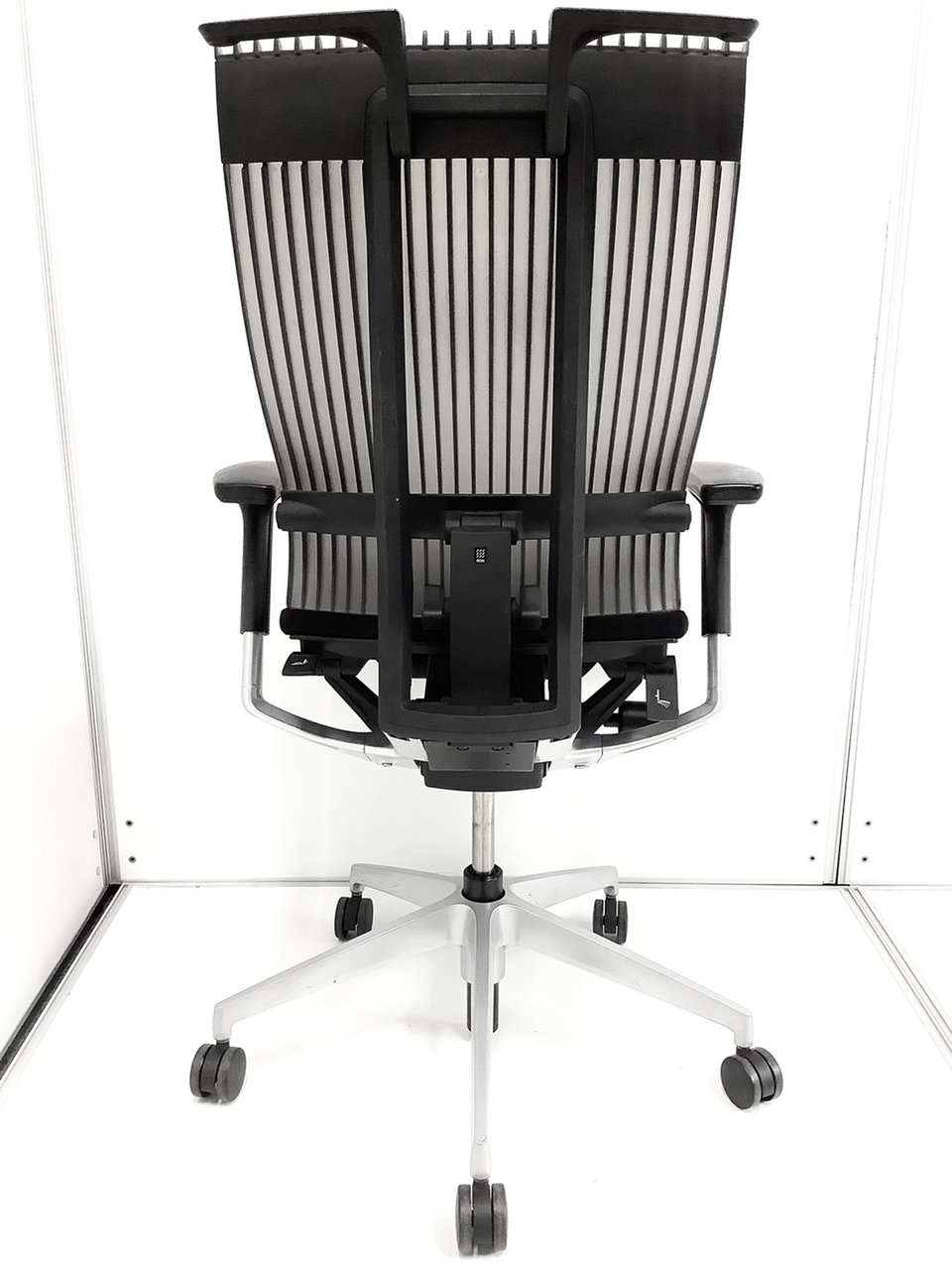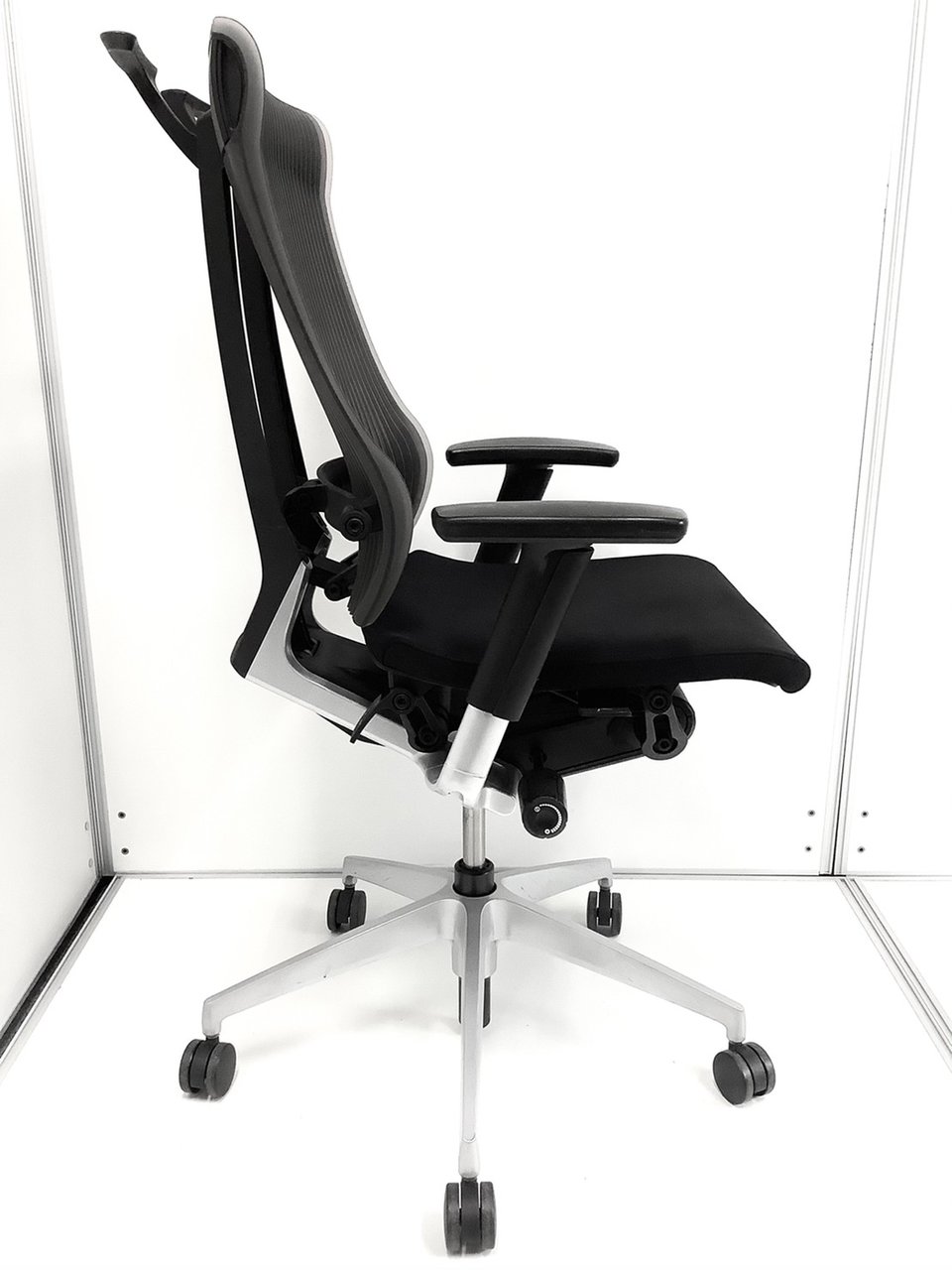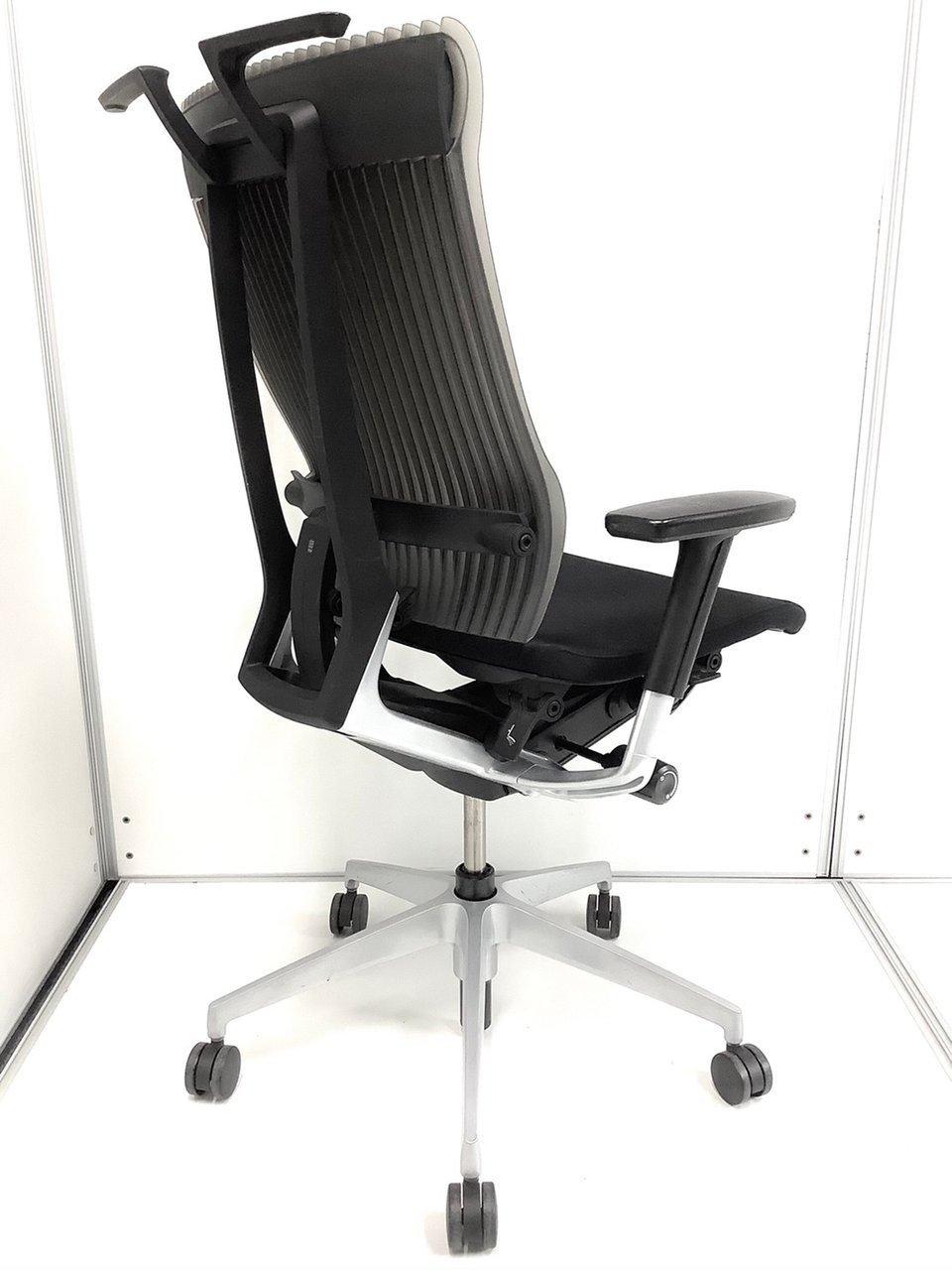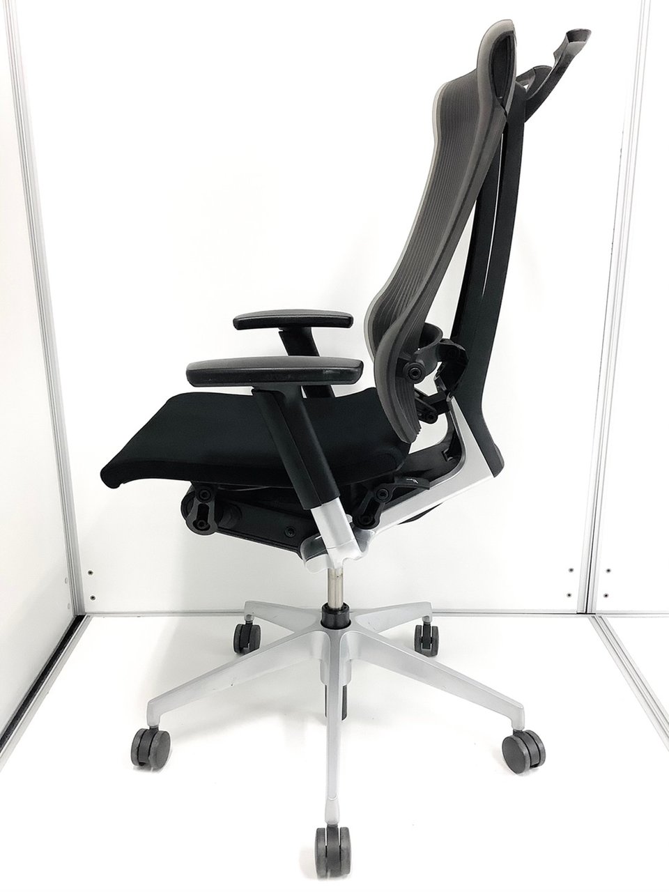 一番の特長は、着座時にチェアがピタっと体にフィットしてくれることです。 人がチェアの座り心地を調節するのではなく、チェアが人に合わせて動くのです!着座時に座面が沈み込みながら後方へスライドし、それと同時に背もたれの腰部分が前にせり出し、「ずっと座っていたくなる」と言われるほどの座り心地に調節してくれます。それを実現しているのが、A.L.S(アクティブ・ランバー・サポート)機構とP.S.S(パッシブ・スライド・シート)機構です。 さらに、背もたれにかかる体圧を徹底的に分析して作られた絶妙なカーブが、常に腰をサポートしつつ背骨のラインに沿ってくれます。