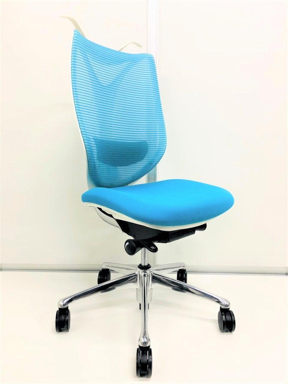 【在庫入替セール品】【前傾機能で作業効率アップ!安定感のある座り心地で人気な大好評!ご自宅用にもオススメ!】■オカムラ(okamura)製 Sabrina(サブリナ) ハイバック 肘無し ■背面メッシュ:アクアブルー 座面:ブルー ホワイトフレーム【弊社使用欄:A01014866】【SN】
