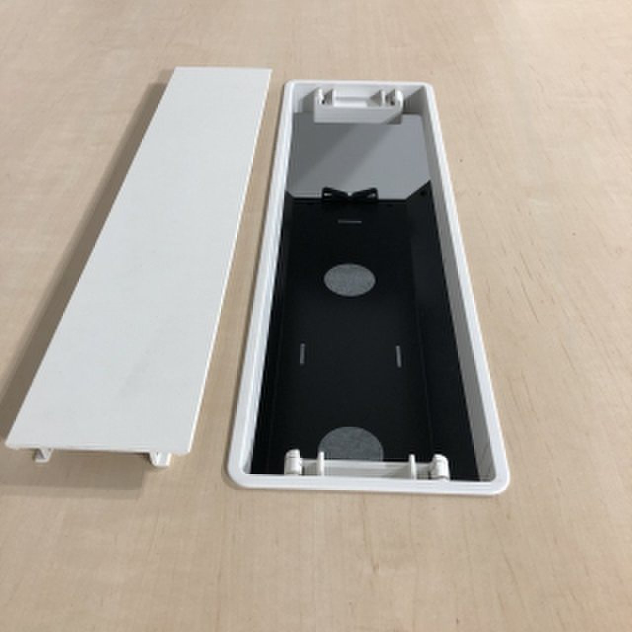 スタンダードなデザインながら、配線取り出し口が付いており、