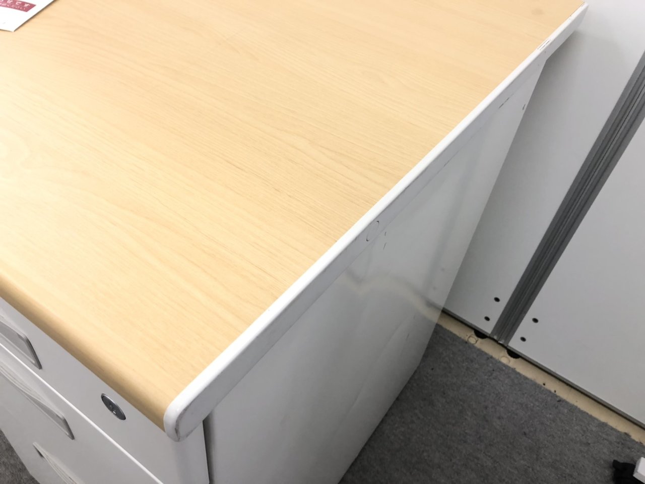 【珍しい木目調の両袖机!】 書類や文具を大量収納! ※一部へこみがある為、特価!- 足立・葛飾店