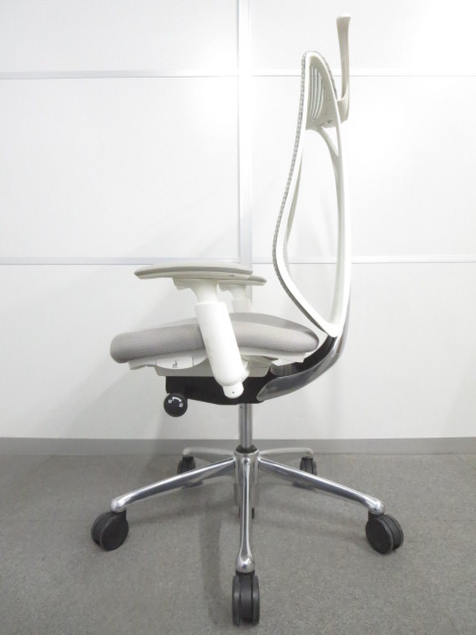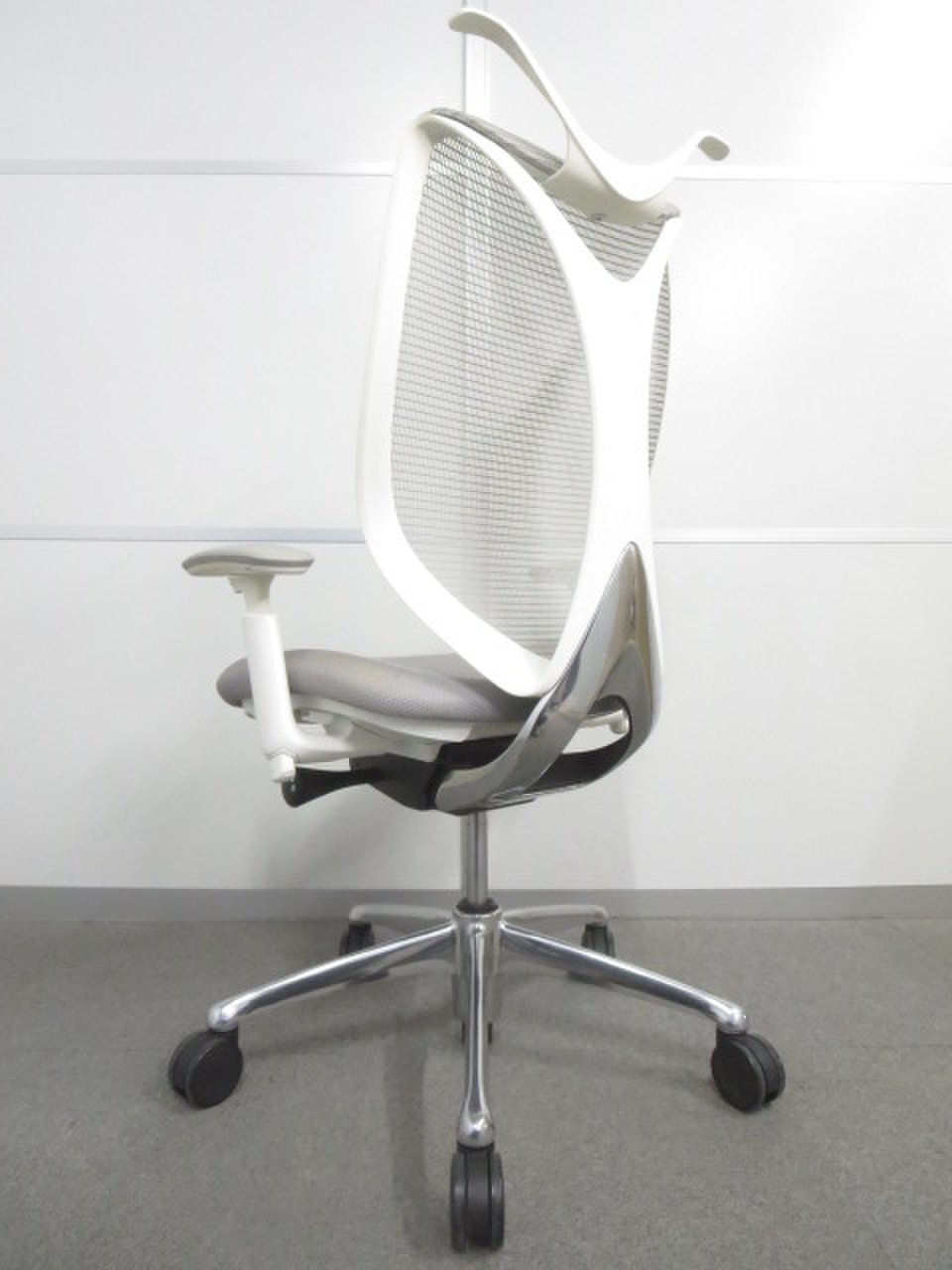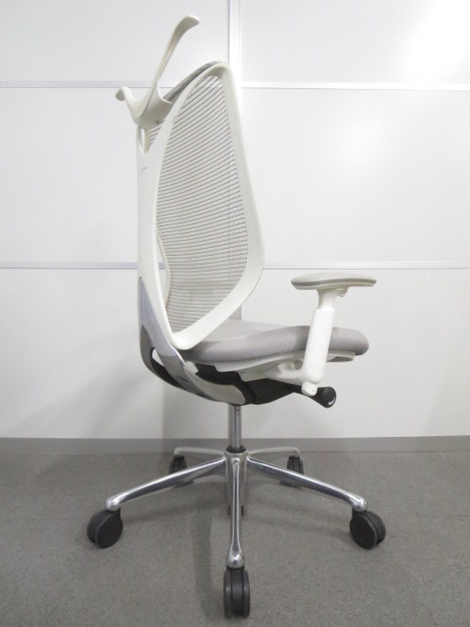 【流れるようなラインの優美なフォルム!】■オカムラ製 サブリナチェア ライトグレー 可動肘・ハンガー付【ハイスペック】サーキュラーバリューCO2削減量の算出について
