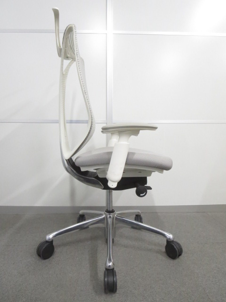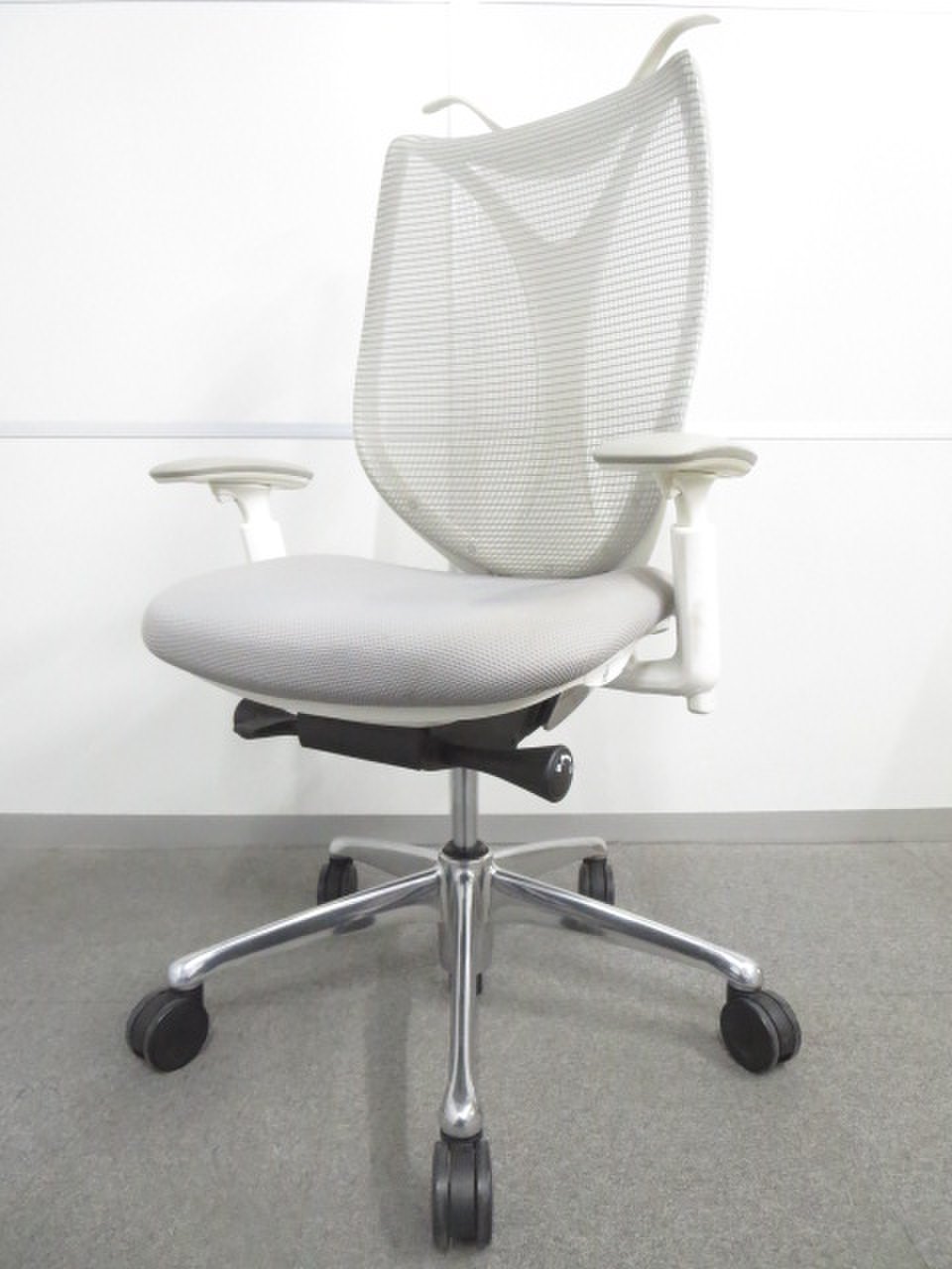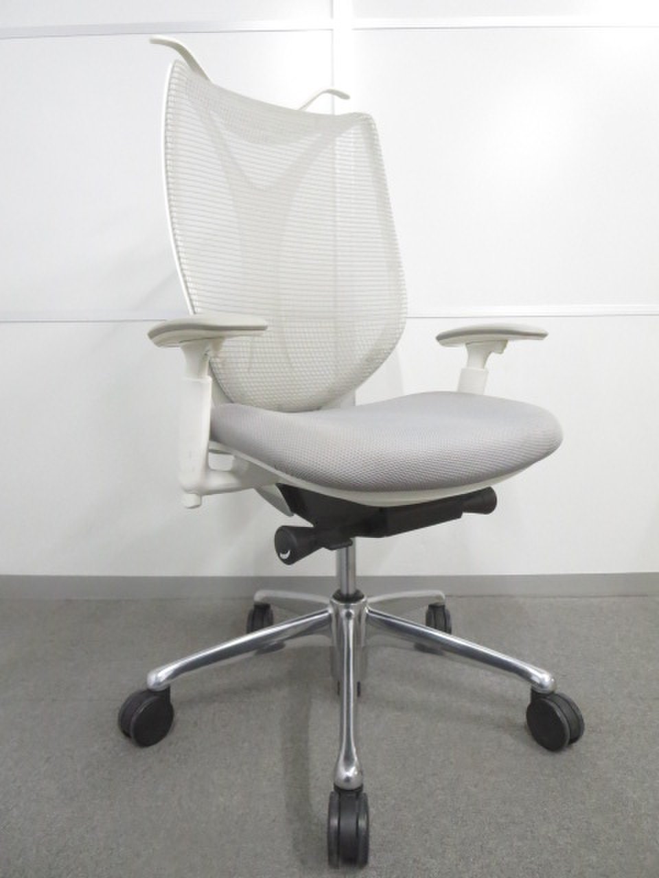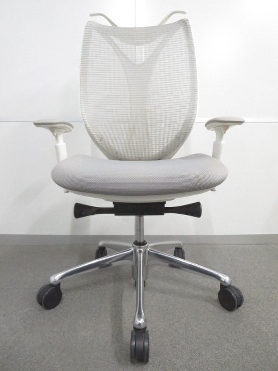 【流れるようなラインの優美なフォルム!】■オカムラ製 サブリナチェア ライトグレー 可動肘・ハンガー付【ハイスペック】サーキュラーバリューCO2削減量の算出について