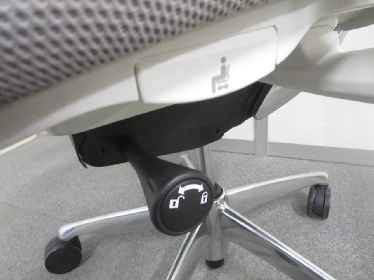 座面下のレバーやダイヤル操作により、スマートに調整することができます。