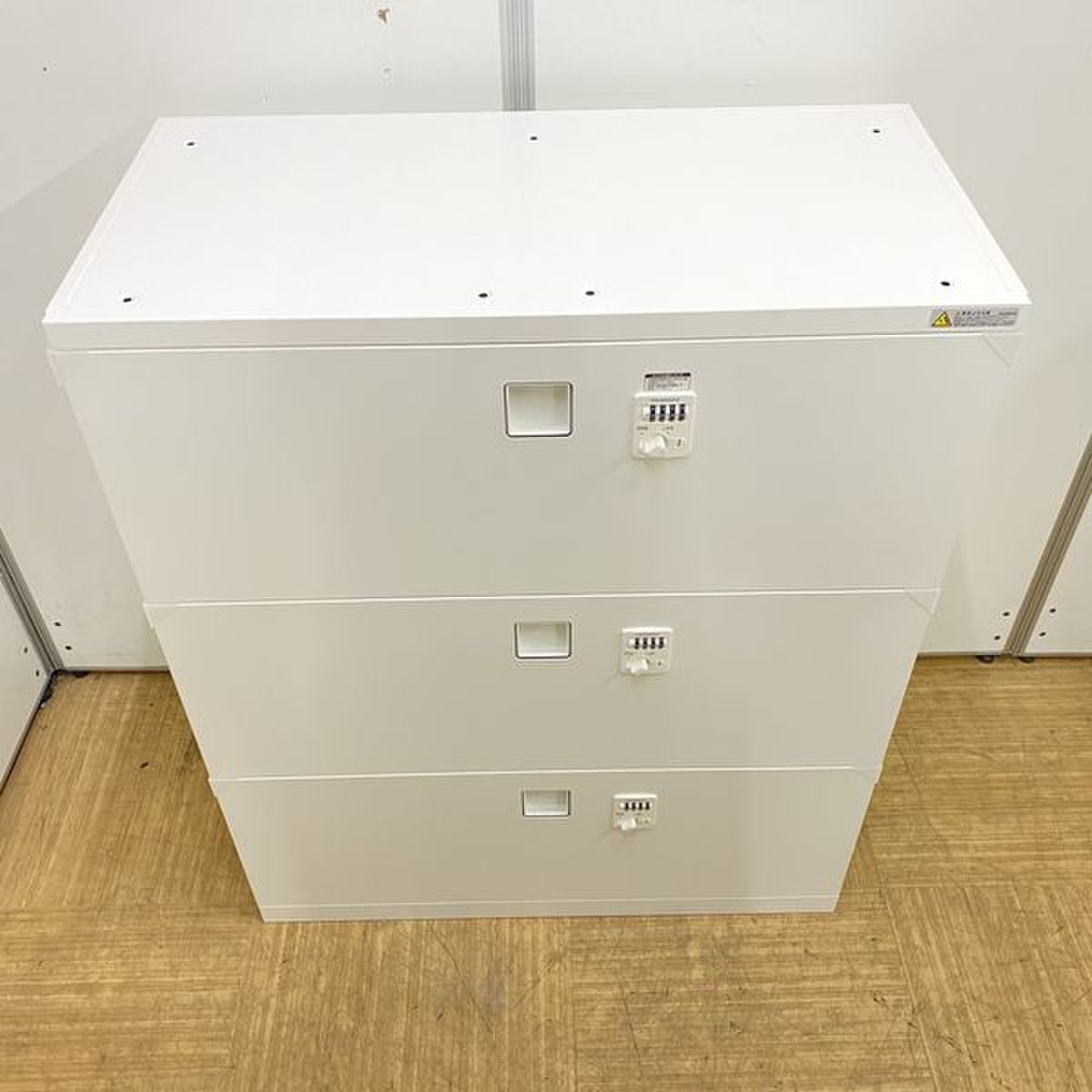 【オフィスの必需品!大容量の三段キャビネット!】■オカムラ(okamura)製 レクトラインシリーズ 3段ラテラル ローキャビネット ■天板/ベース付 ■シリンダー錠 ■ホワイト 【弊社使用欄:A01037187】
