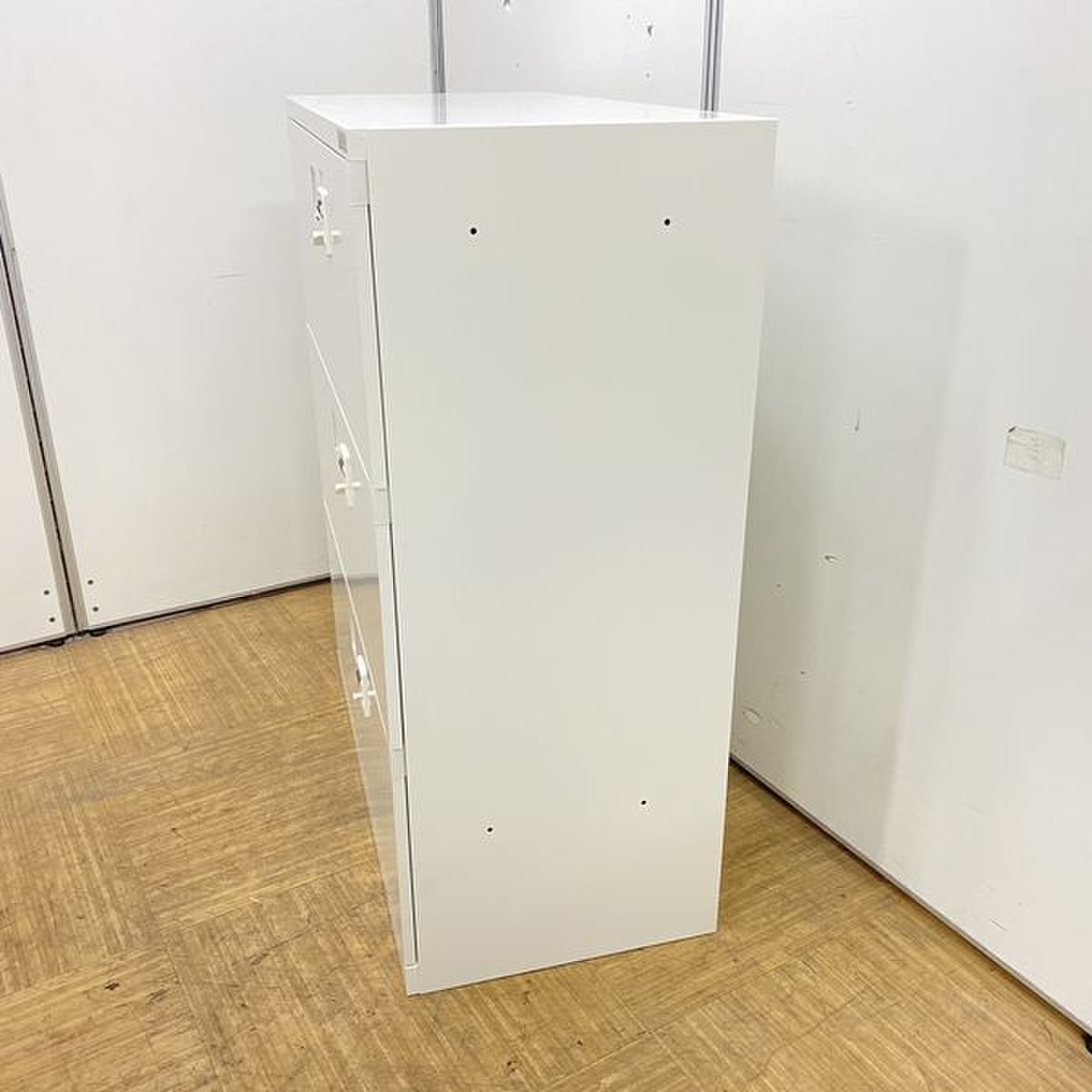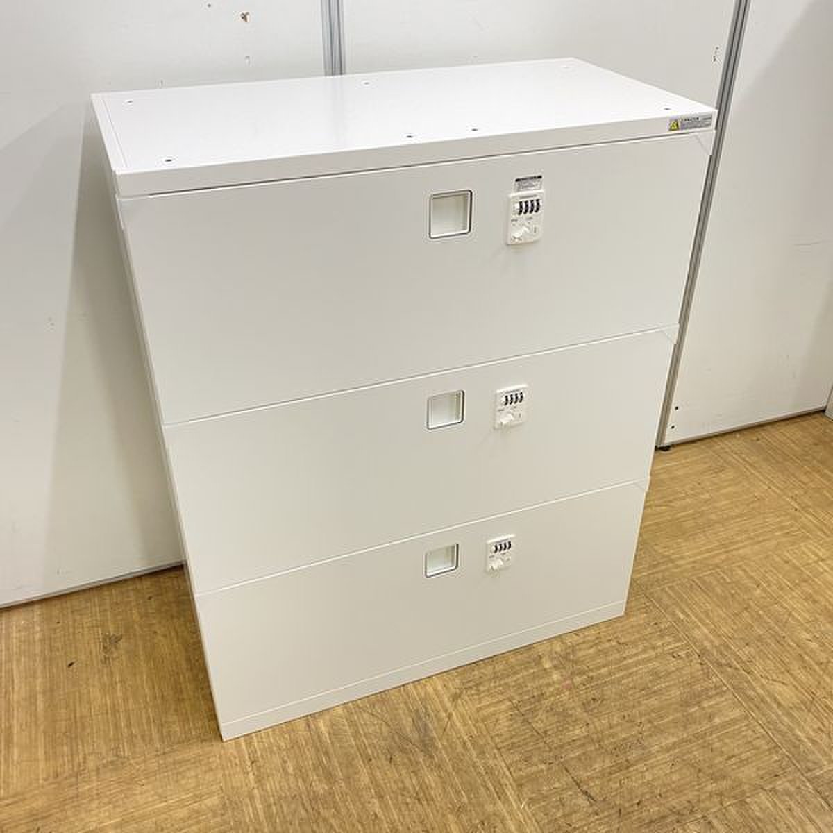 オカムラ レクトライン 3段ラテラル書庫 ホワイト天板 シリンダー錠 鍵付き ※取っ手部分に若干日焼けあり