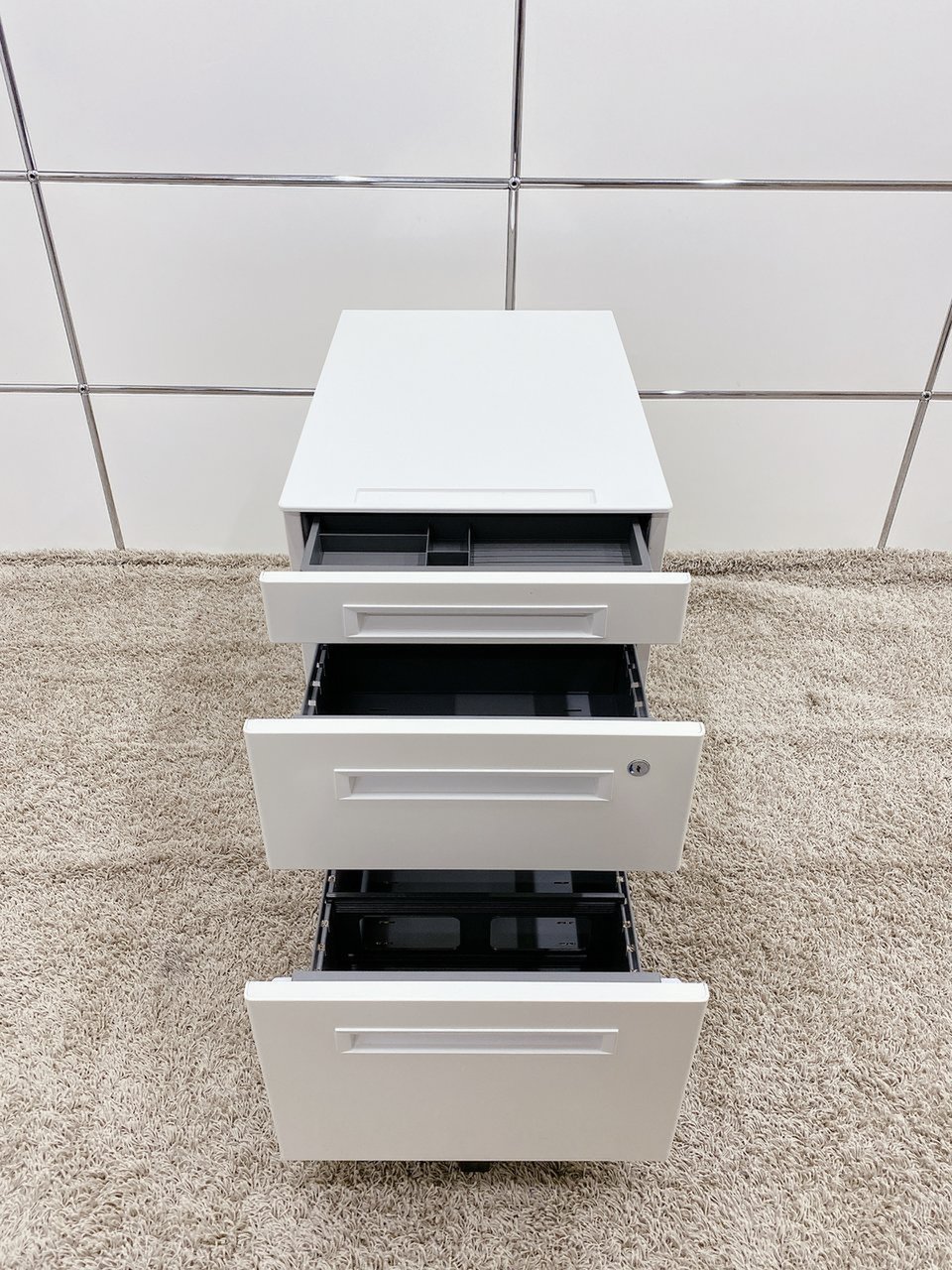 - 一部不具合ありその脇机・ワゴンの本来の効用を果たすための機能以外の一部が使用不可な状態。(例、引出が開閉しづらい、 キャスターロック機能使用不可、ラッチ不良 等がある。)