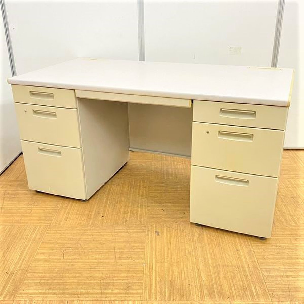 ★コクヨ製 BS ニューグレー W1400xD700xH700サイズ シリンダー スタンダードなデザインで高品質! 収納力を備えたスチールデスク! 上長様用の席にもおススメです! W1400両袖机!!