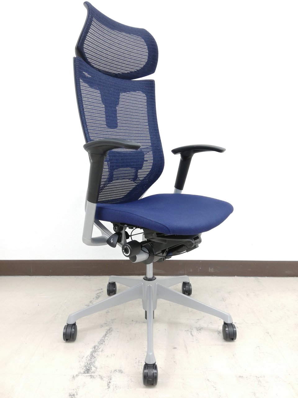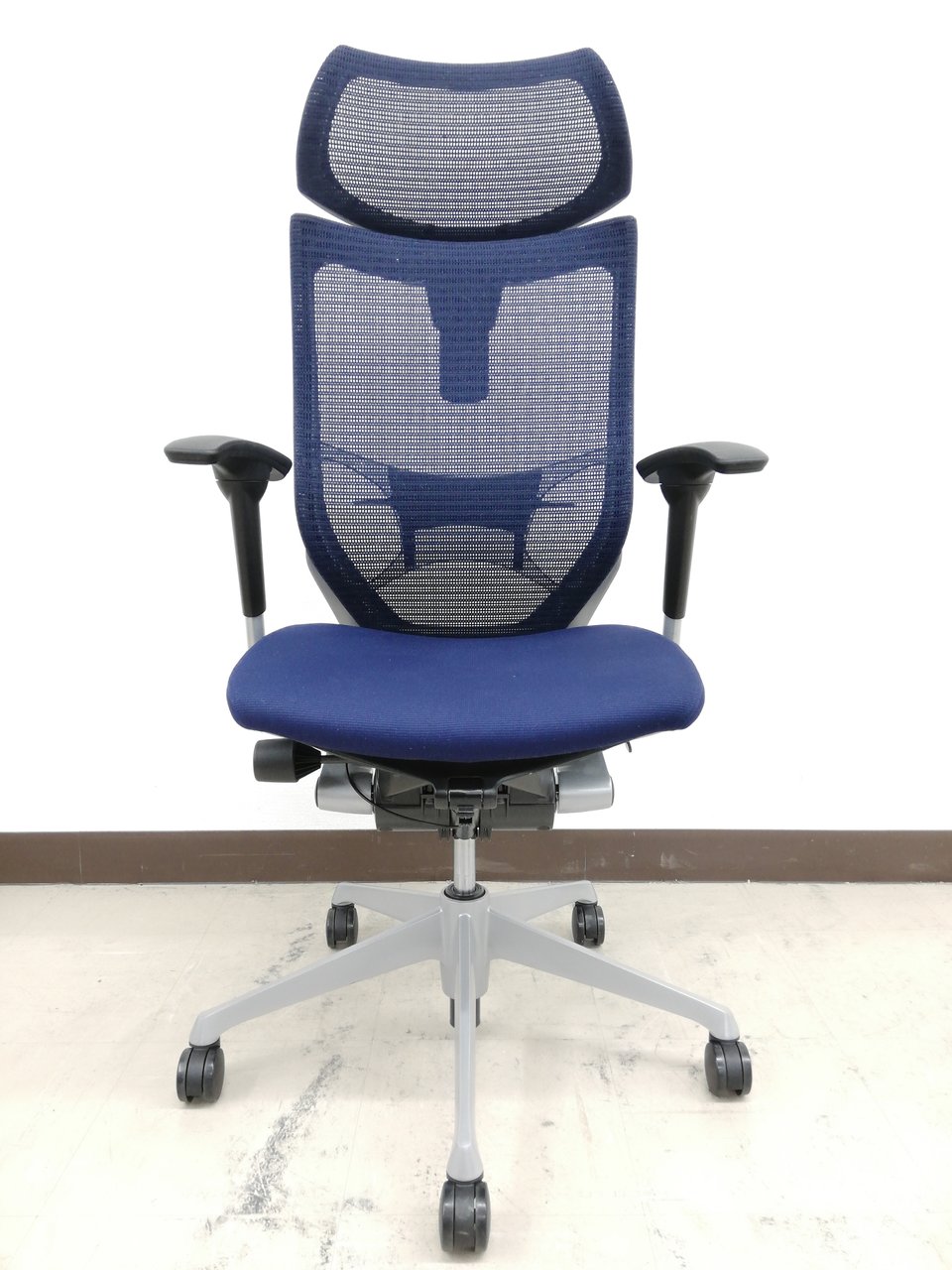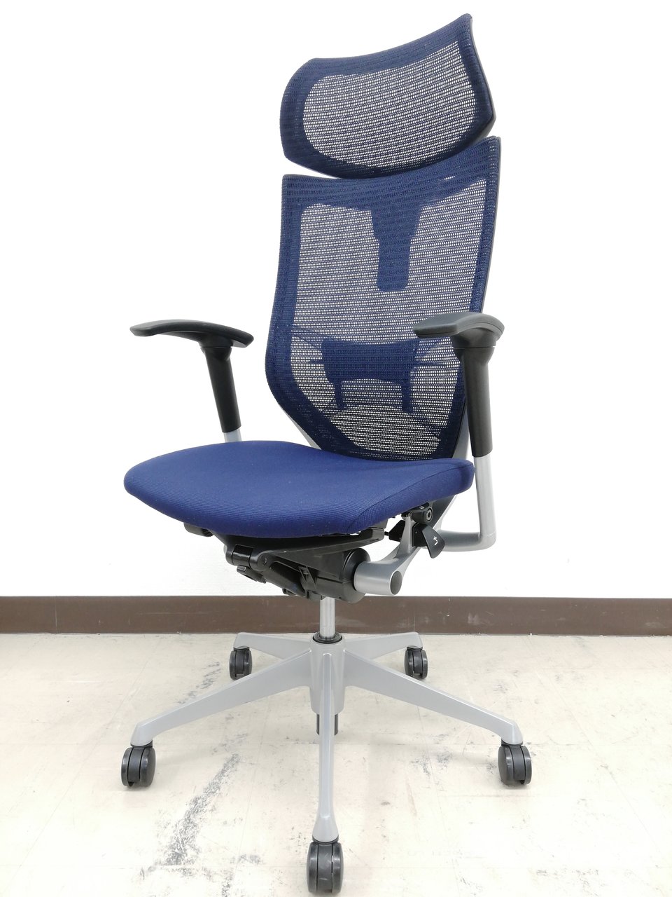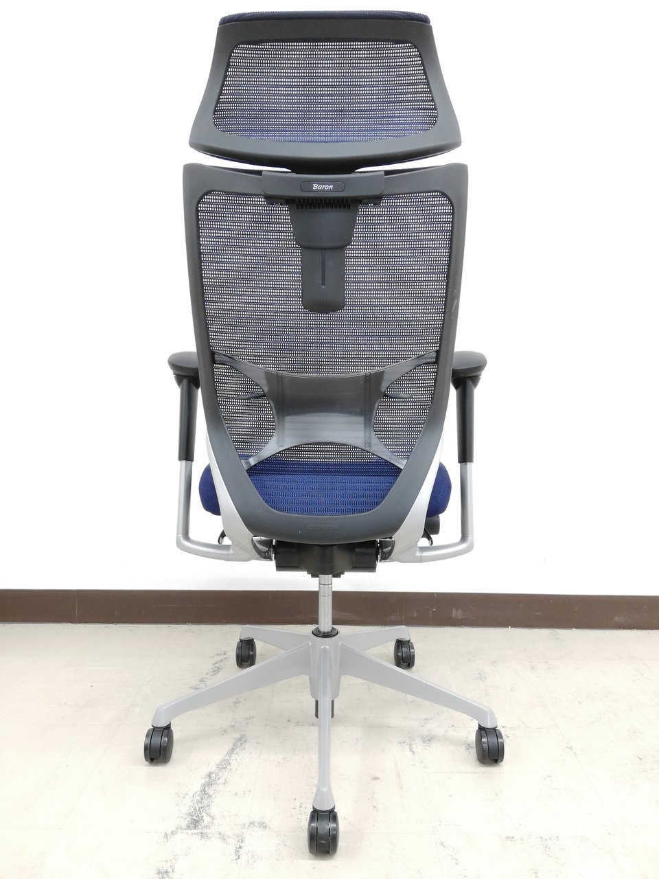 【2016年製Aランク品】ネイビーバロン(Baron)チェア様※可動ヘッドレスト&ランバーサポート仕様◆オカムラ製【RP】- 埼玉本店