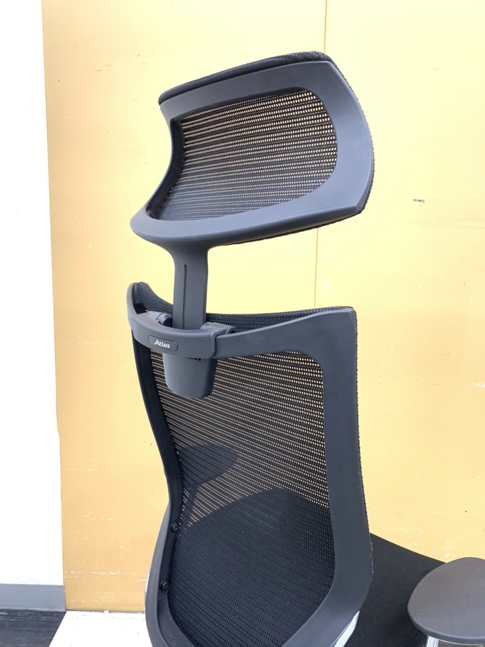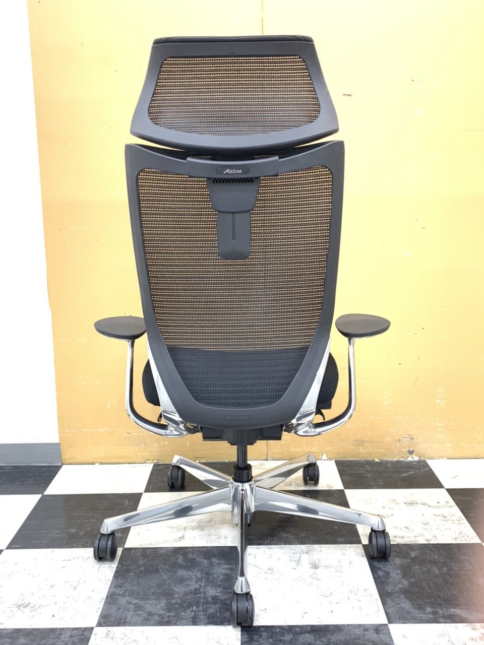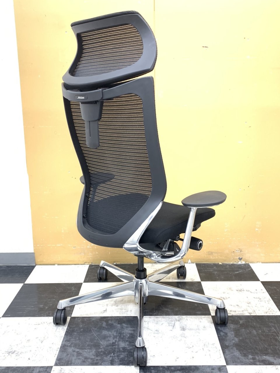 【2019年製!激レア商品!】オカムラ(okamura)Atlas(アトラス)/色:ブラック/エクストラハイバック(可動ヘッドレストタイプ) ポリッシュフレーム/背メッシュ/座クッション- 埼玉本店