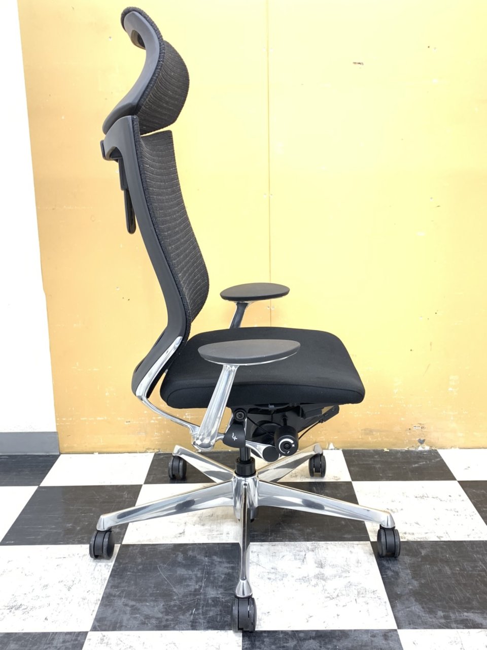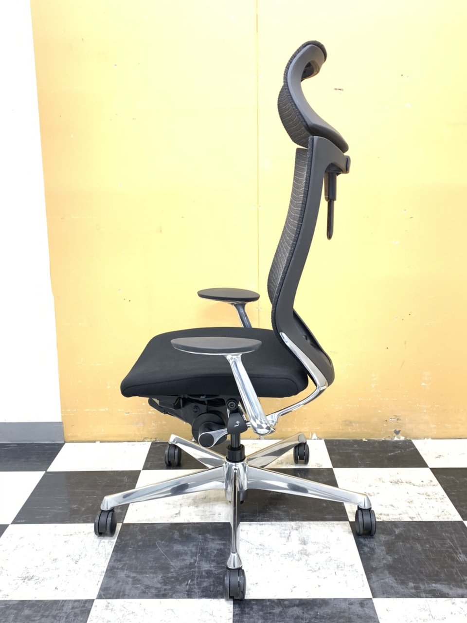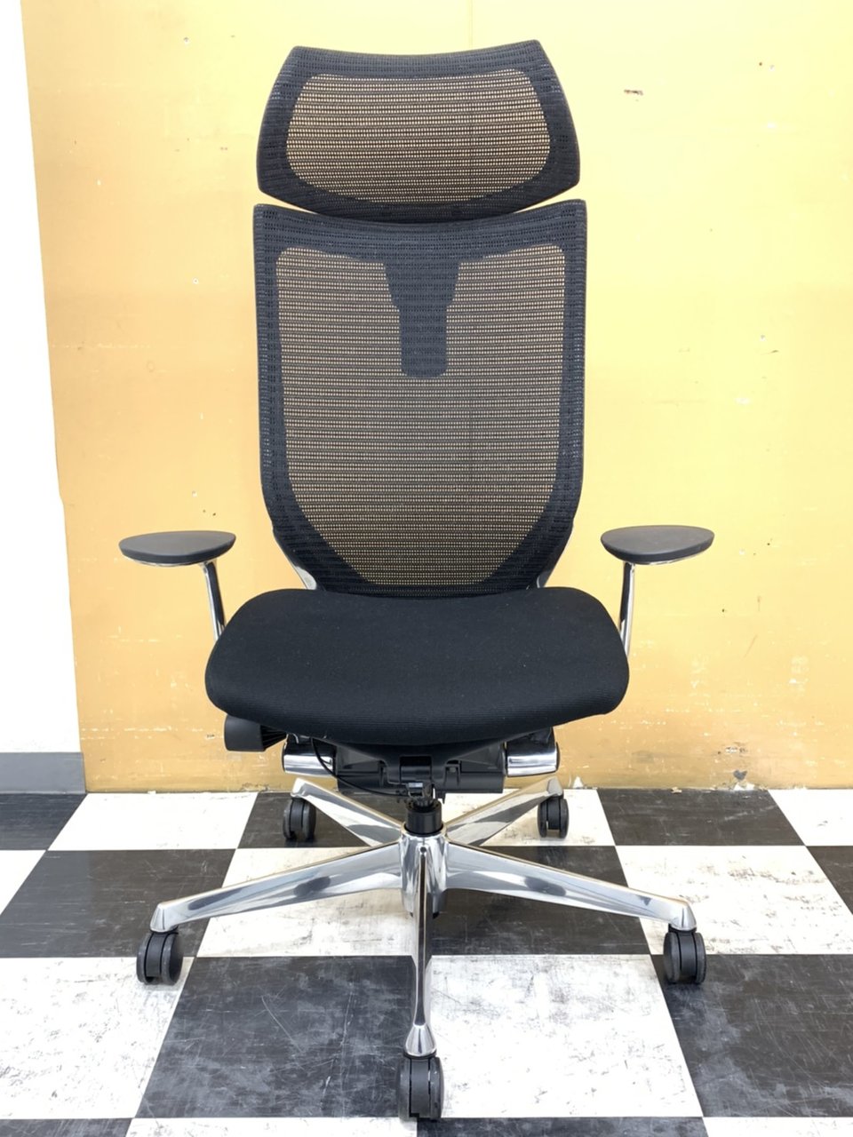 【2019年製!激レア商品!】オカムラ(okamura)Atlas(アトラス)/色:ブラック/エクストラハイバック(可動ヘッドレストタイプ) ポリッシュフレーム/背メッシュ/座クッション- 埼玉本店