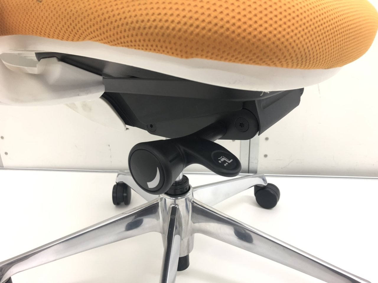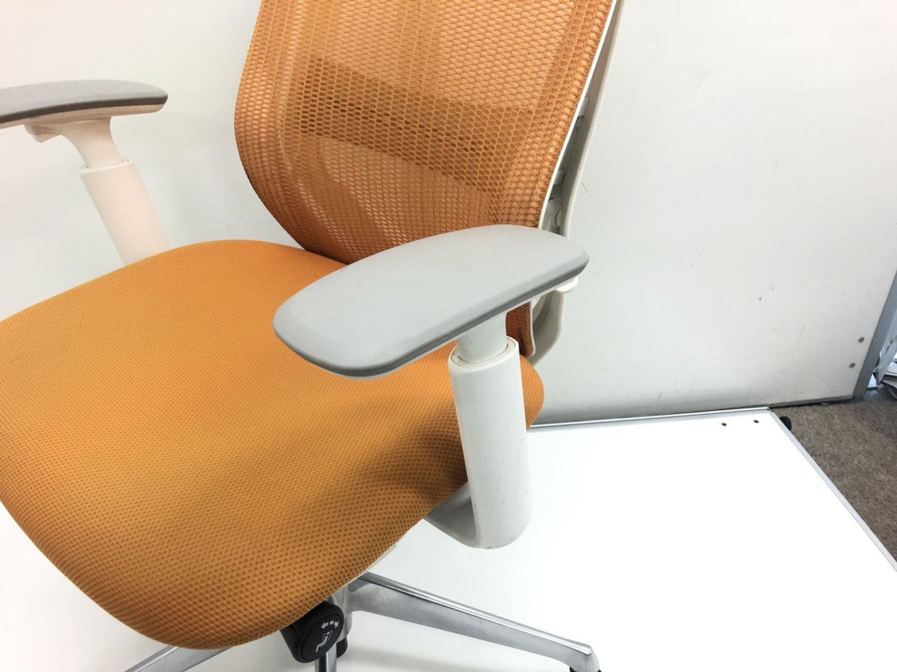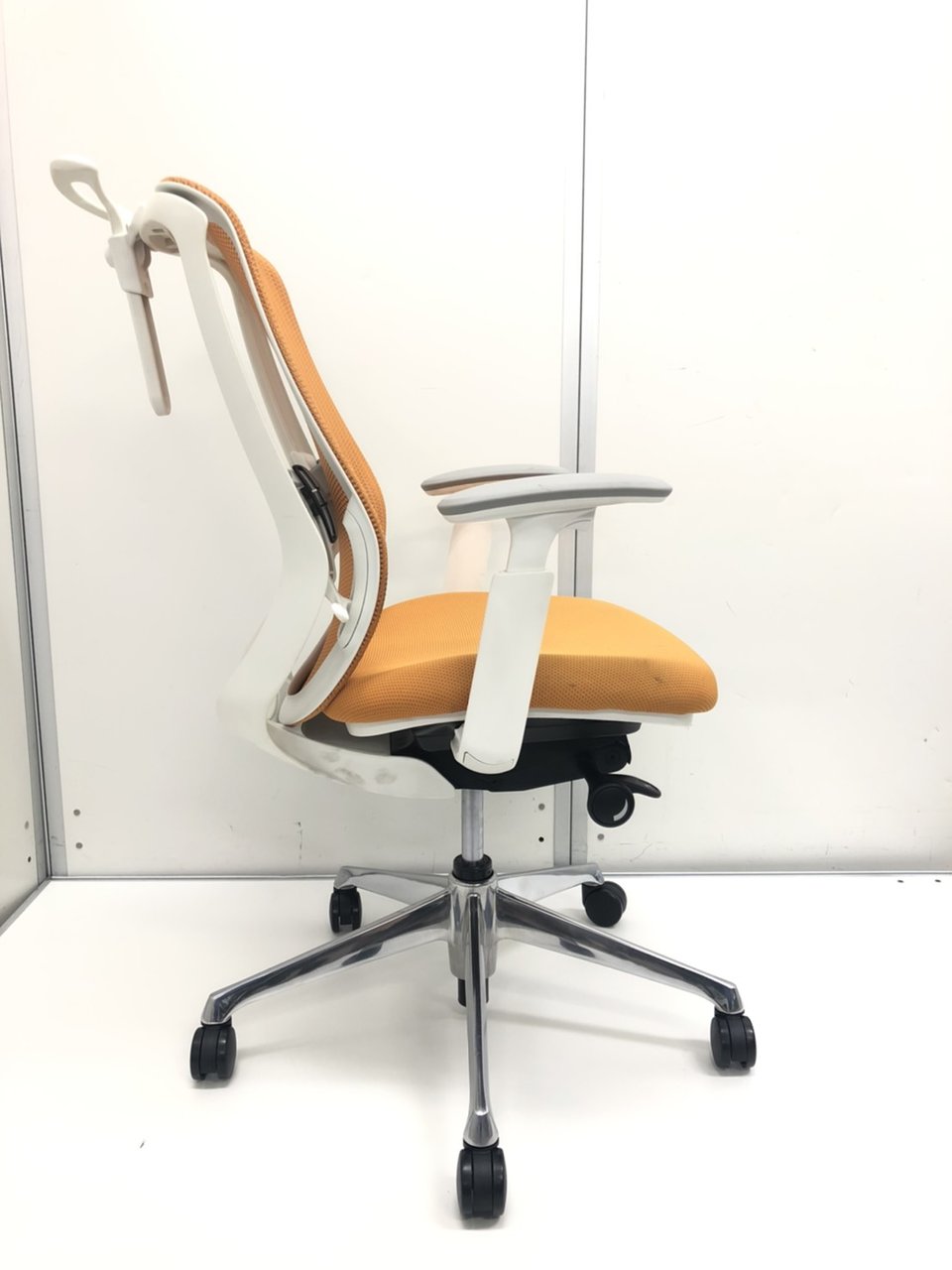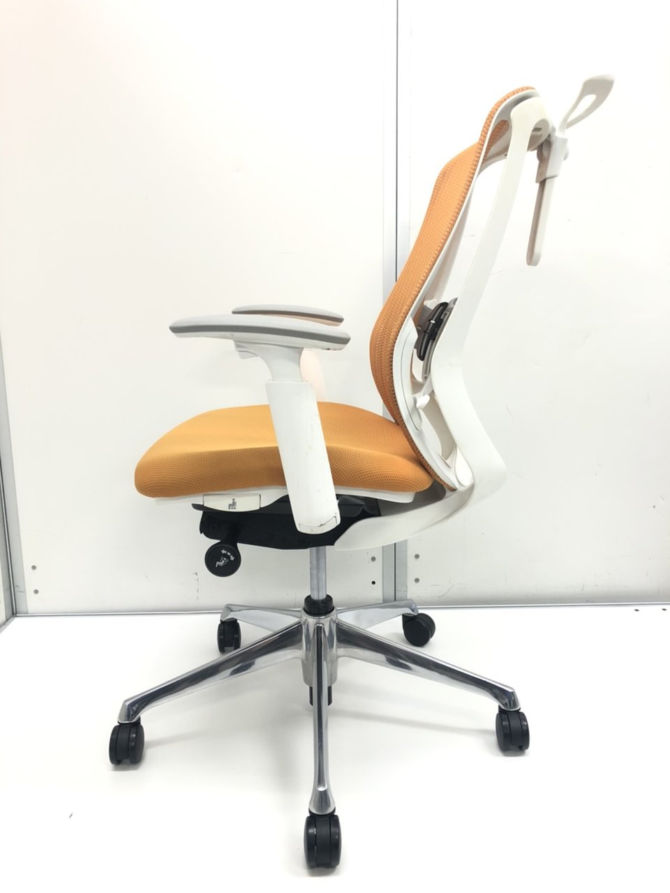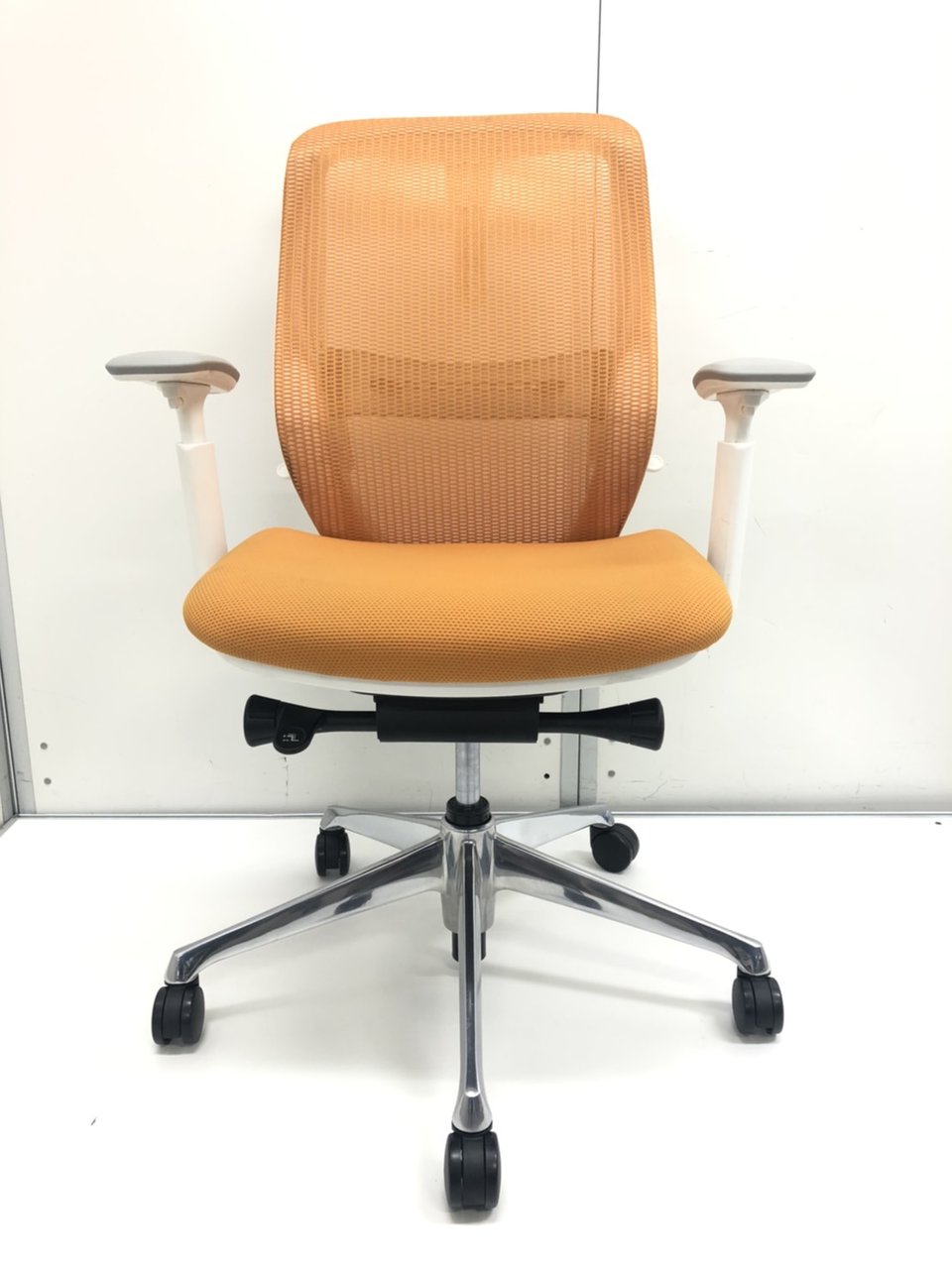 【在庫入替セール品!】【背のカーブを変えられる新感覚のオフィスシーティング!】■オカムラ シルフィーチェア 可動肘付 オレンジ ハンガー付 ホワイトフレーム ■新感覚のオフィスシーティング!【Okamrua Sylphy】