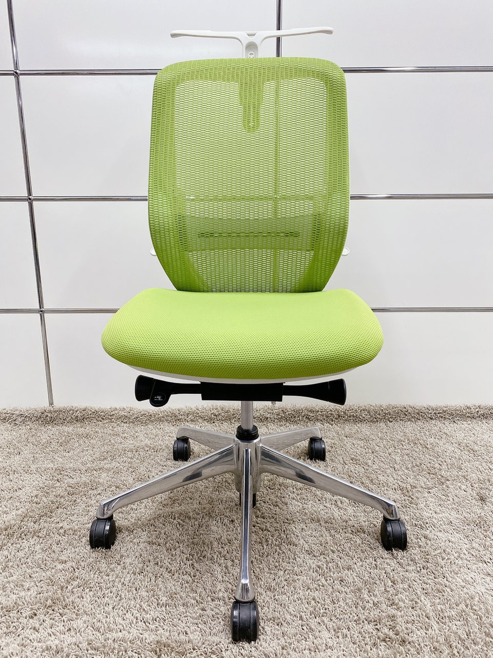 オカムラ製 シルフィ ライムグリーン ブラックフレーム 背面メッシュ ハイバック 樹脂脚 前傾チルト機能付き! オカムラ製品で最も人気を集める高機能メッシュチェア! 肘無しハイバックチェア!!