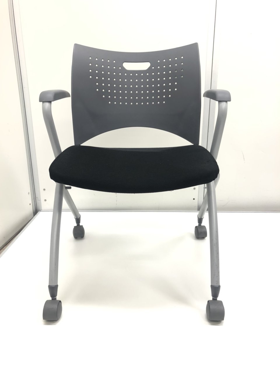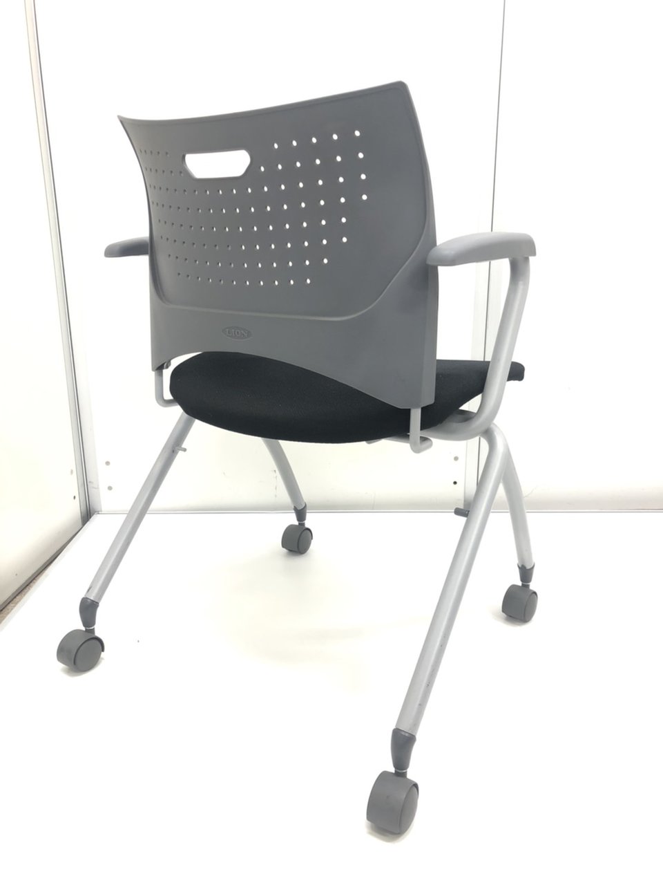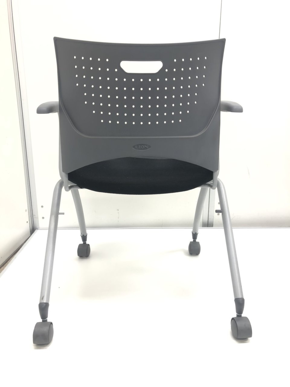 【座面使用感あり】【お買い得品】【数揃います!!】ライオン製/スタッキングチェア/座面ブラック・背面グレー- 在庫数