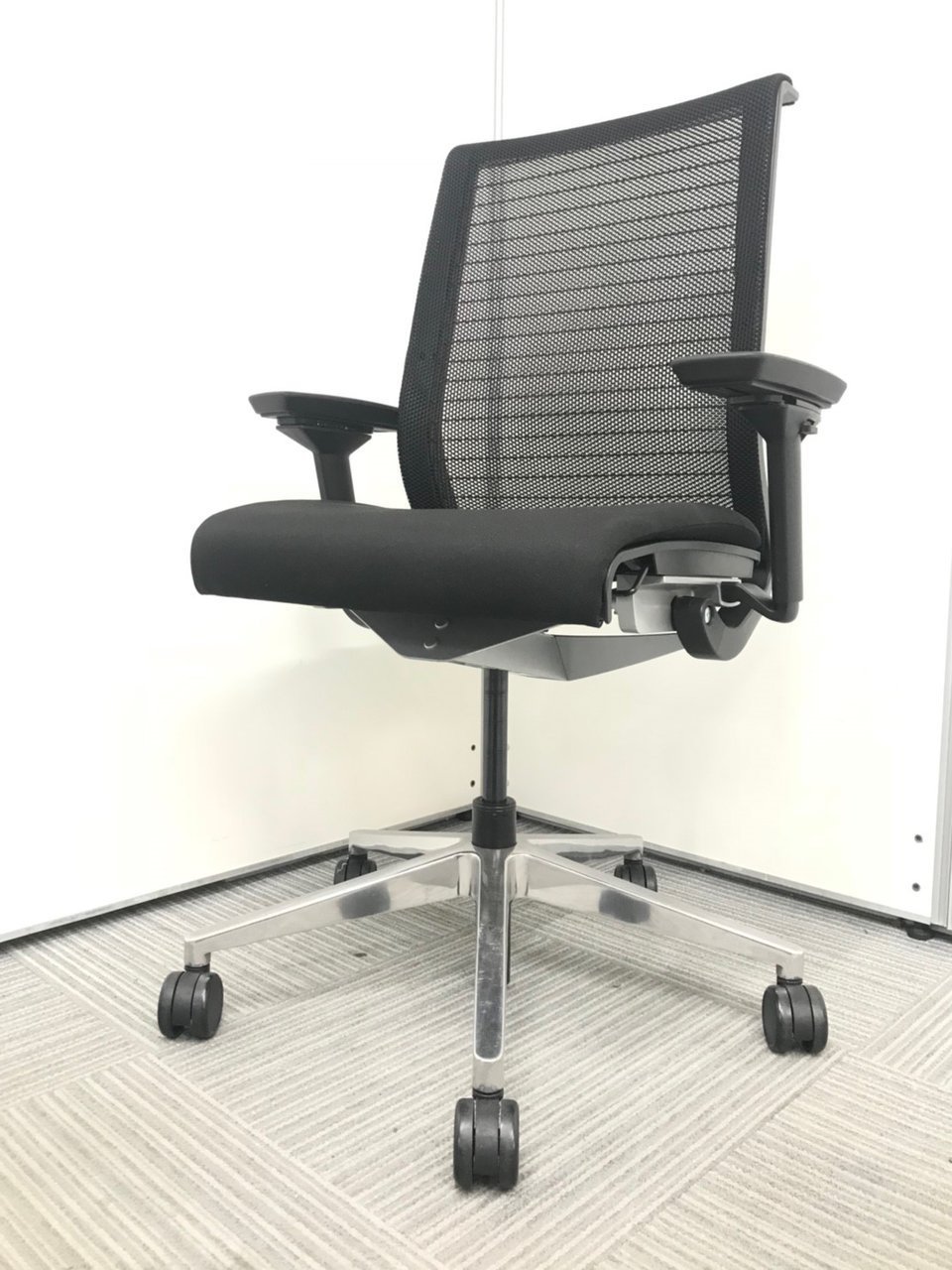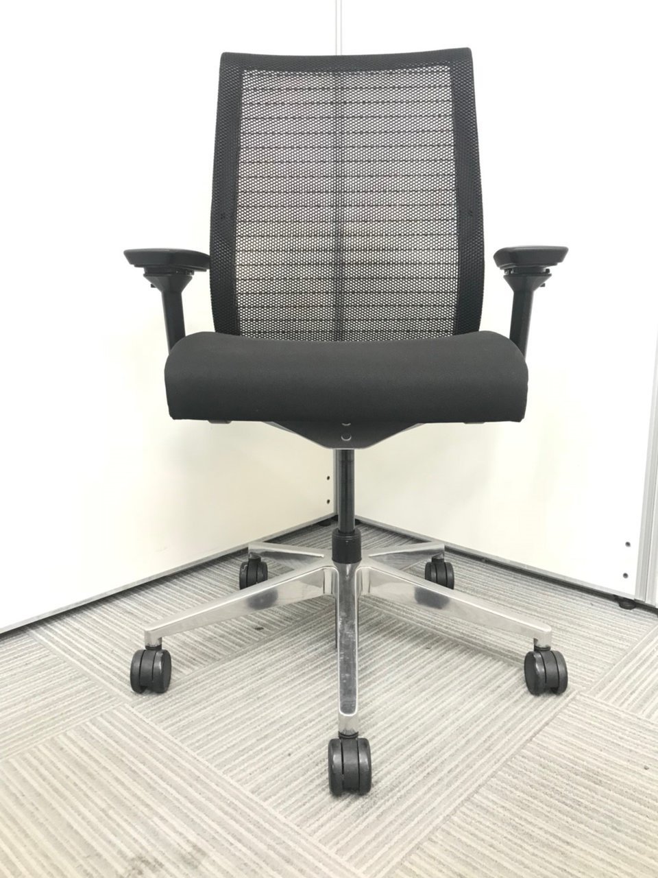 ■スチールケース(Steelcase)製 ■シンク(THINK)チェア ■ブラック(black) ■肘付き/可動肘 ■ハイバック ■背面メッシュ ■オススメ/人気/定番商品【弊社使用欄:A01046268】【KN】