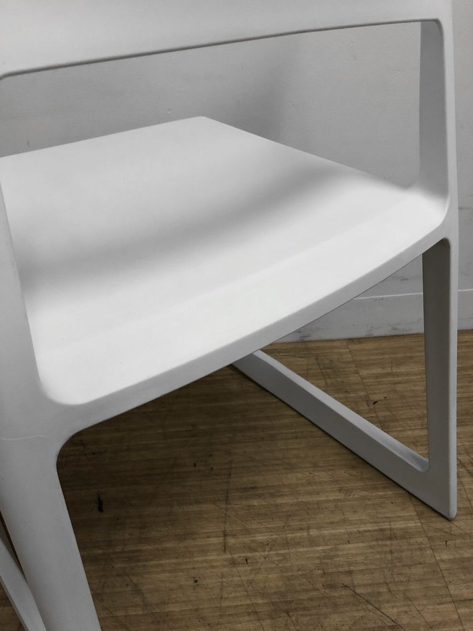 - かなり強い濃い黄ばみ・変色が商品全体にある。(例、座面・背もたれ、脚部等にある。)