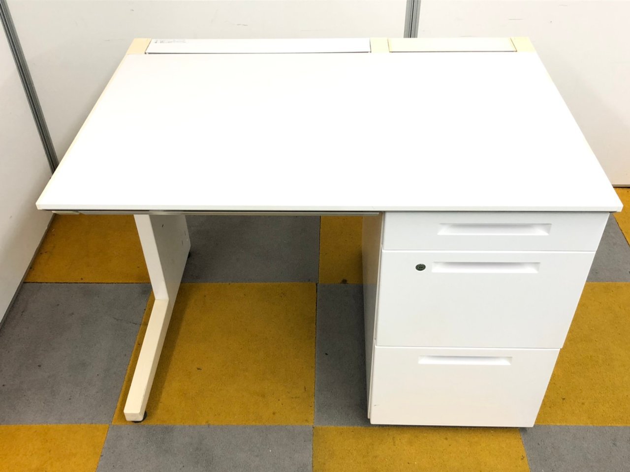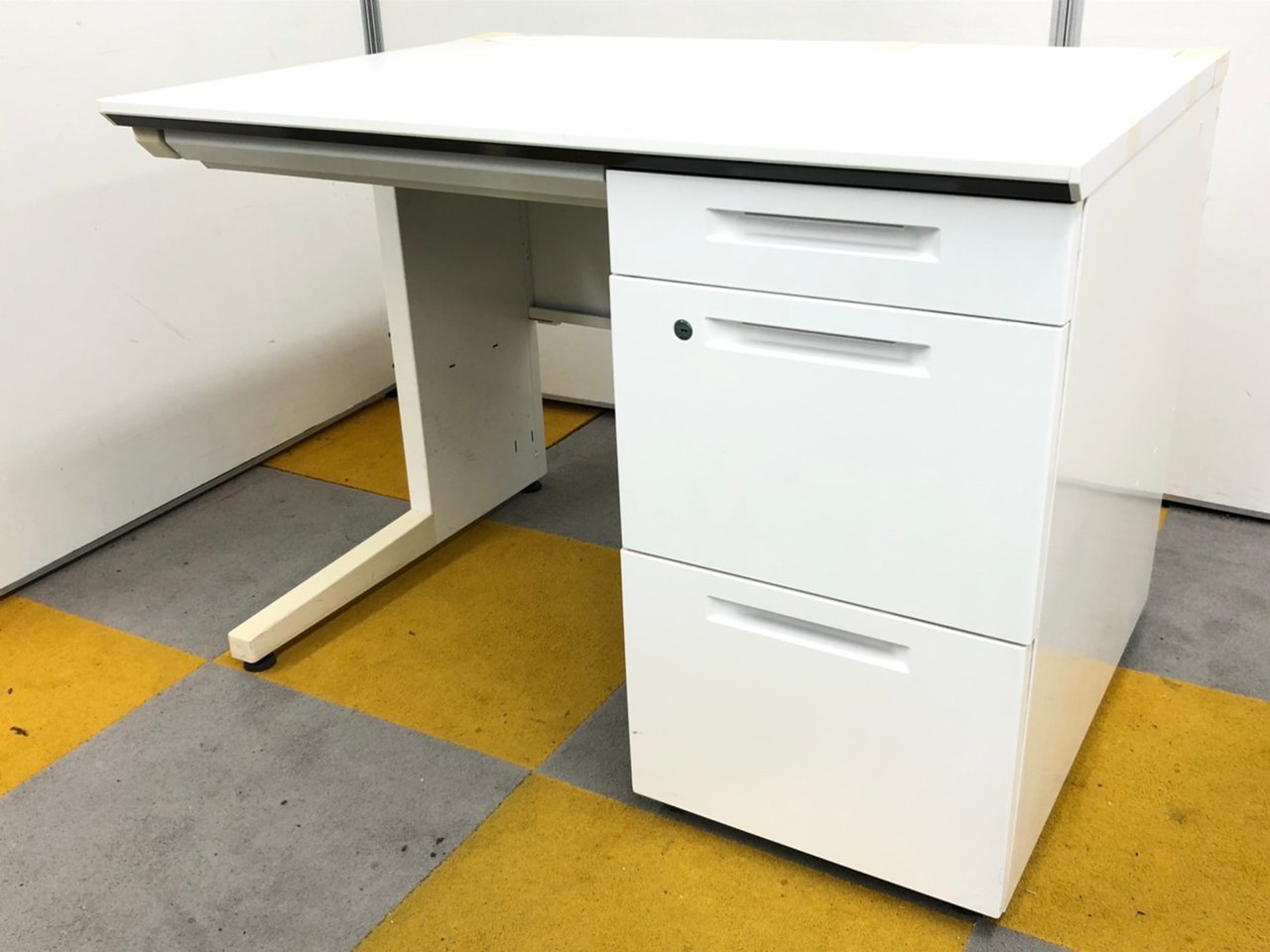 【省スペースのオフィスに最適!コンパクトサイズの片袖机!配線カバーも充実の高品質デスク!】■コクヨ(KOKUYO)製 アイエス(iS)シリーズ 片袖机 W1000×D700㎜ ■シリンダー錠 ■ホワイト