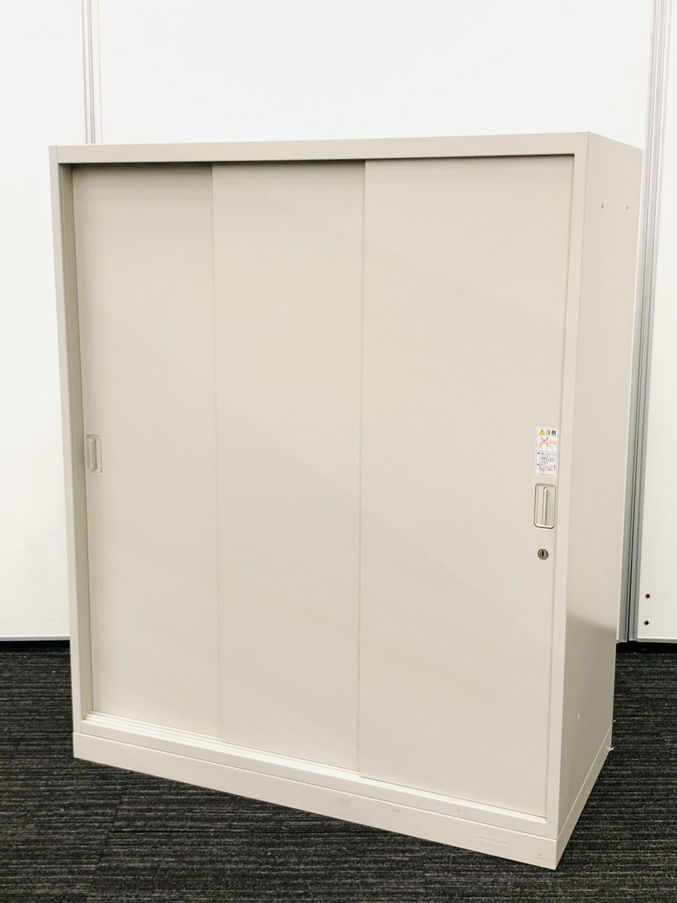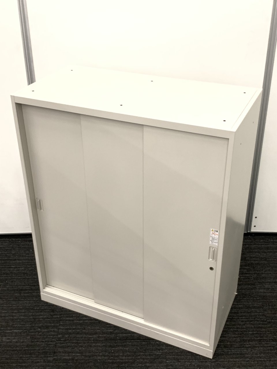 【お問い合わせの多い引違い書庫が入荷!スライド引き戸だから開閉スペースに困りません!】■オカムラ(okamura)製 レクトラインシリーズ 3枚引き戸タイプ 引違い書庫 ローキャビネット ■シリンダー錠 ■ニューグレー【2508】弊社使用欄【A01029264】