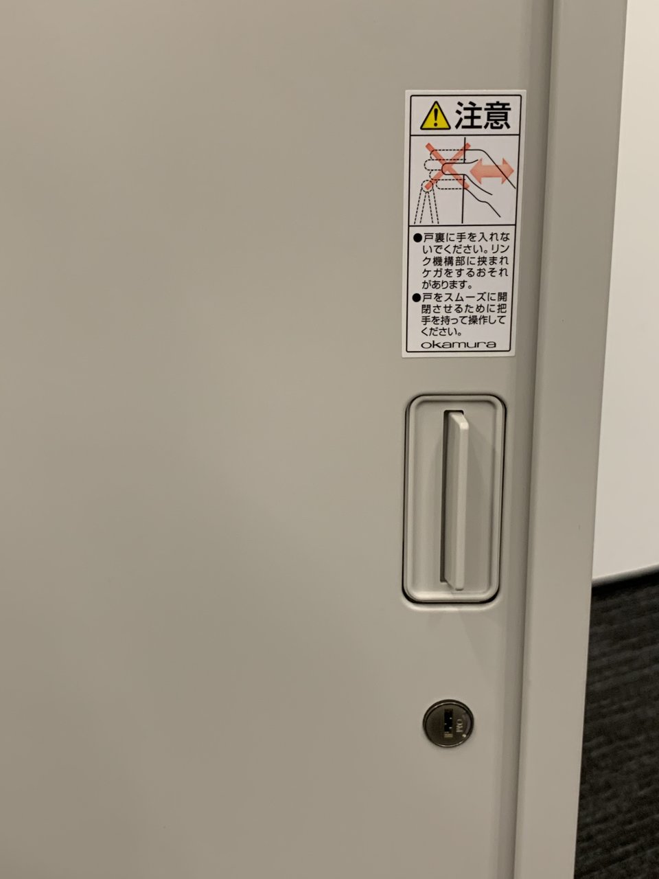 【お問い合わせの多い引違い書庫が入荷!スライド引き戸だから開閉スペースに困りません!】■オカムラ(okamura)製 レクトラインシリーズ 3枚引き戸タイプ 引違い書庫 ■シリンダー錠 ■ニューグレー