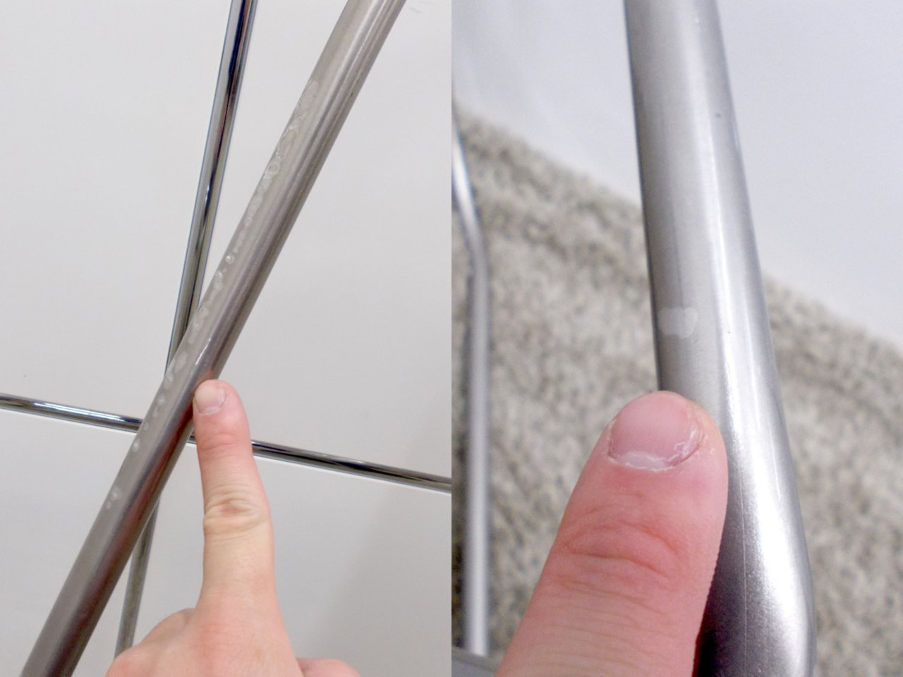 - 目立つ箇所あり傷・破れ・ほつれ・へたり・しわが多数または深い傷・破れ・ほつれ・へたり・しわが一部ある。※座面・背もたれ、シェル、脚部等にある。