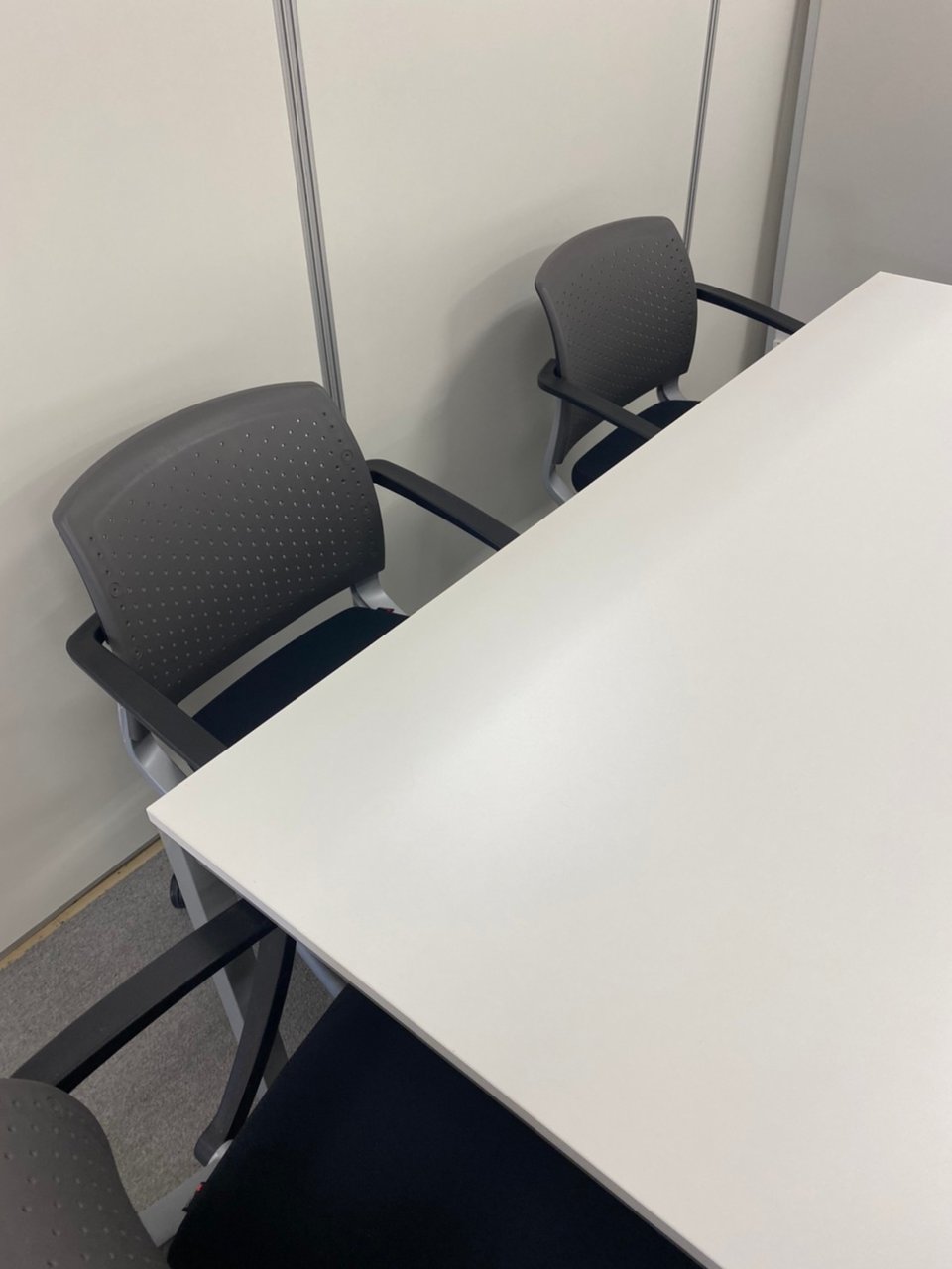 チェアはデスクの上や中に入れて保管しております。もちろん試座も可能ですので、お気軽にお申し付けください!