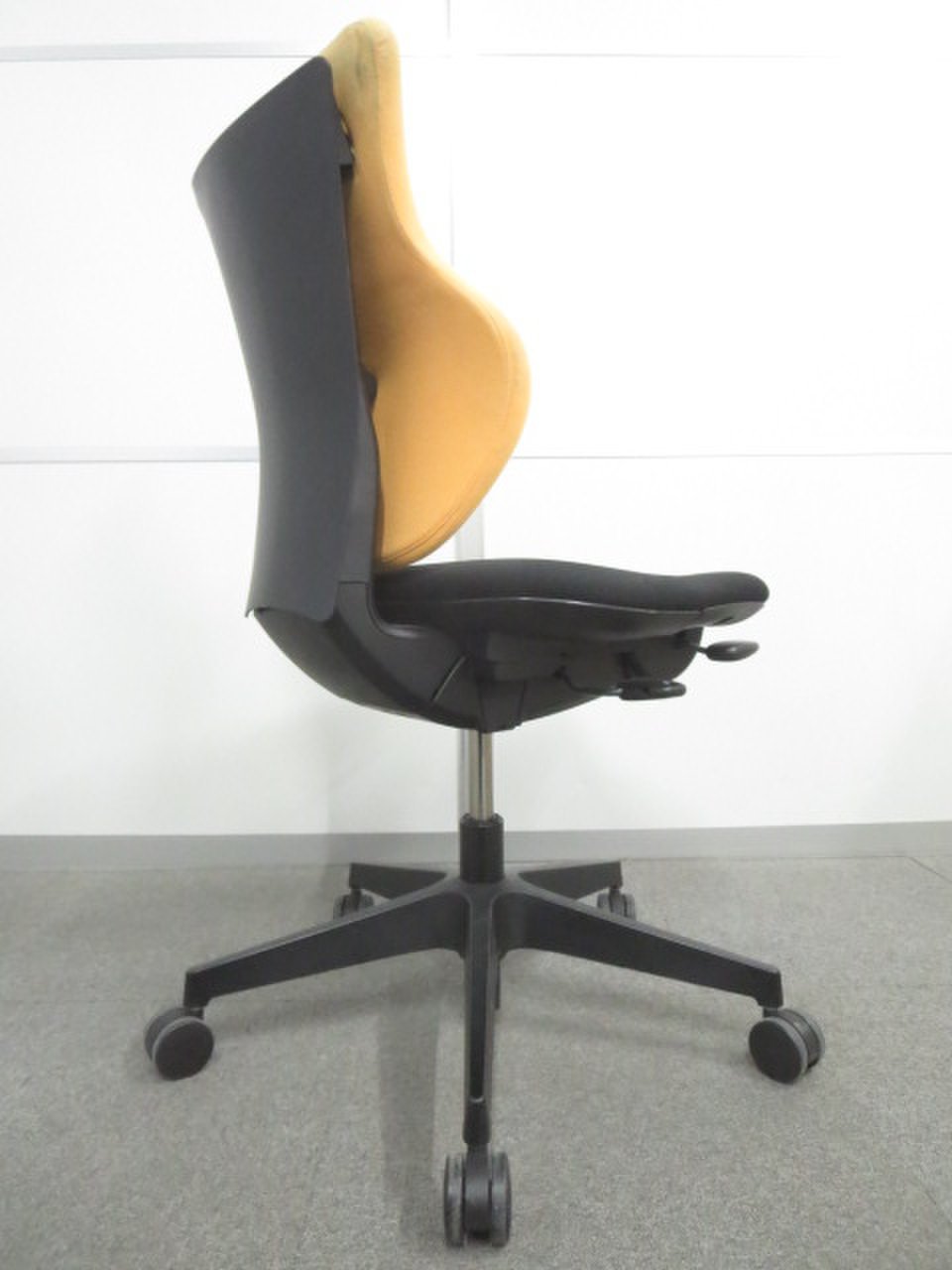 - 女性の作業姿勢に多く見られる2つの姿勢を、美しく支える背もたれ形状です。後傾しても背のラインを崩しません。