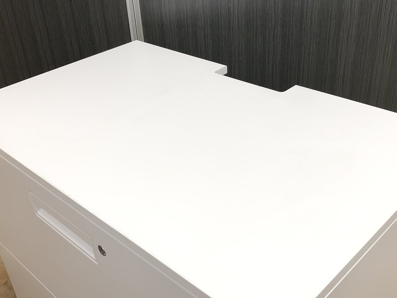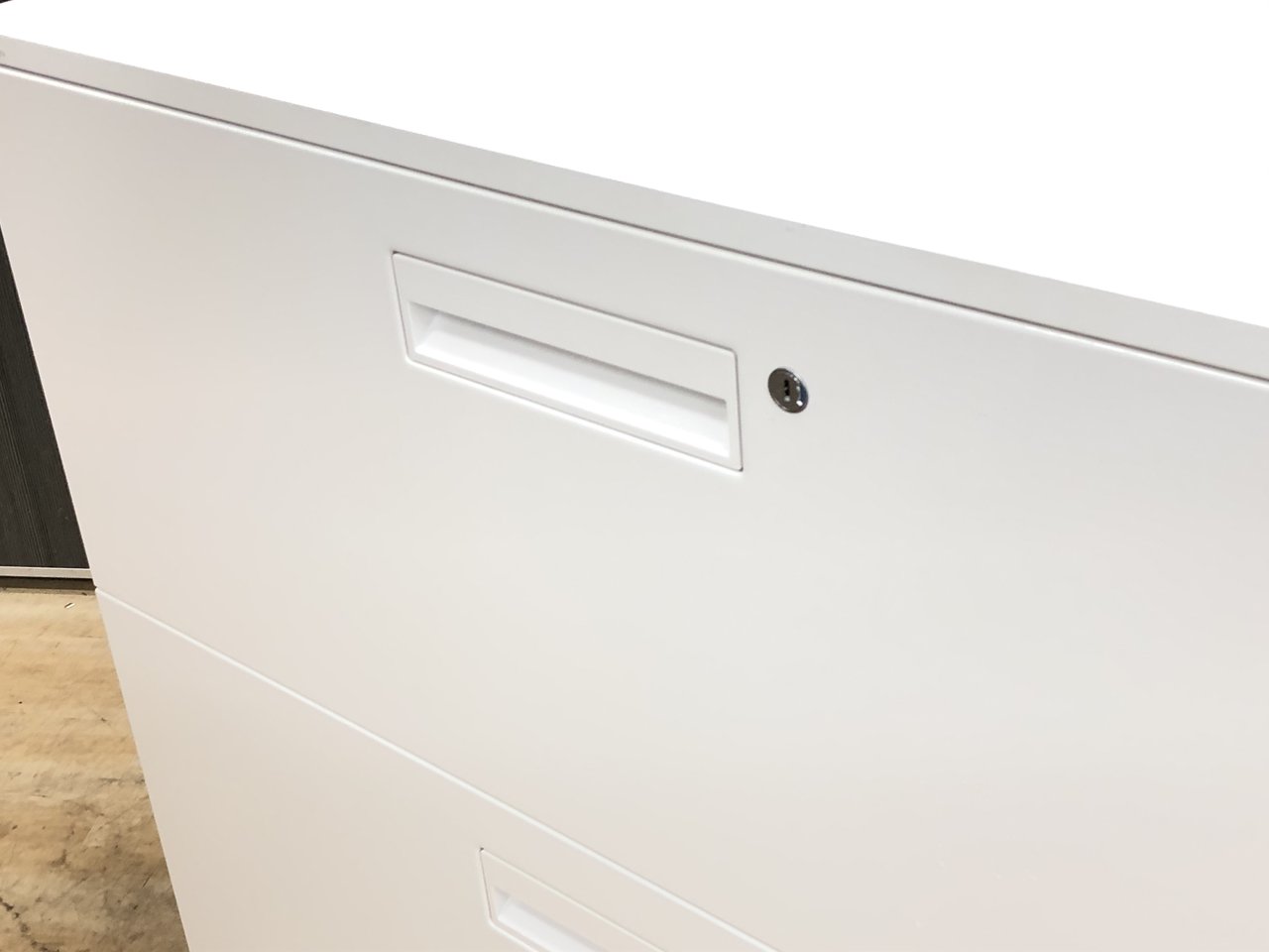 【4台入荷】【収納力抜群の3段ラテラル書庫!A4書類が大量に収納可能!】■コクヨ(KOKUYO)製 エディア(EDIA)シリーズ 3段ラテラル ローキャビネット ■天板/ベース付き ■ホワイト ■シリンダー錠