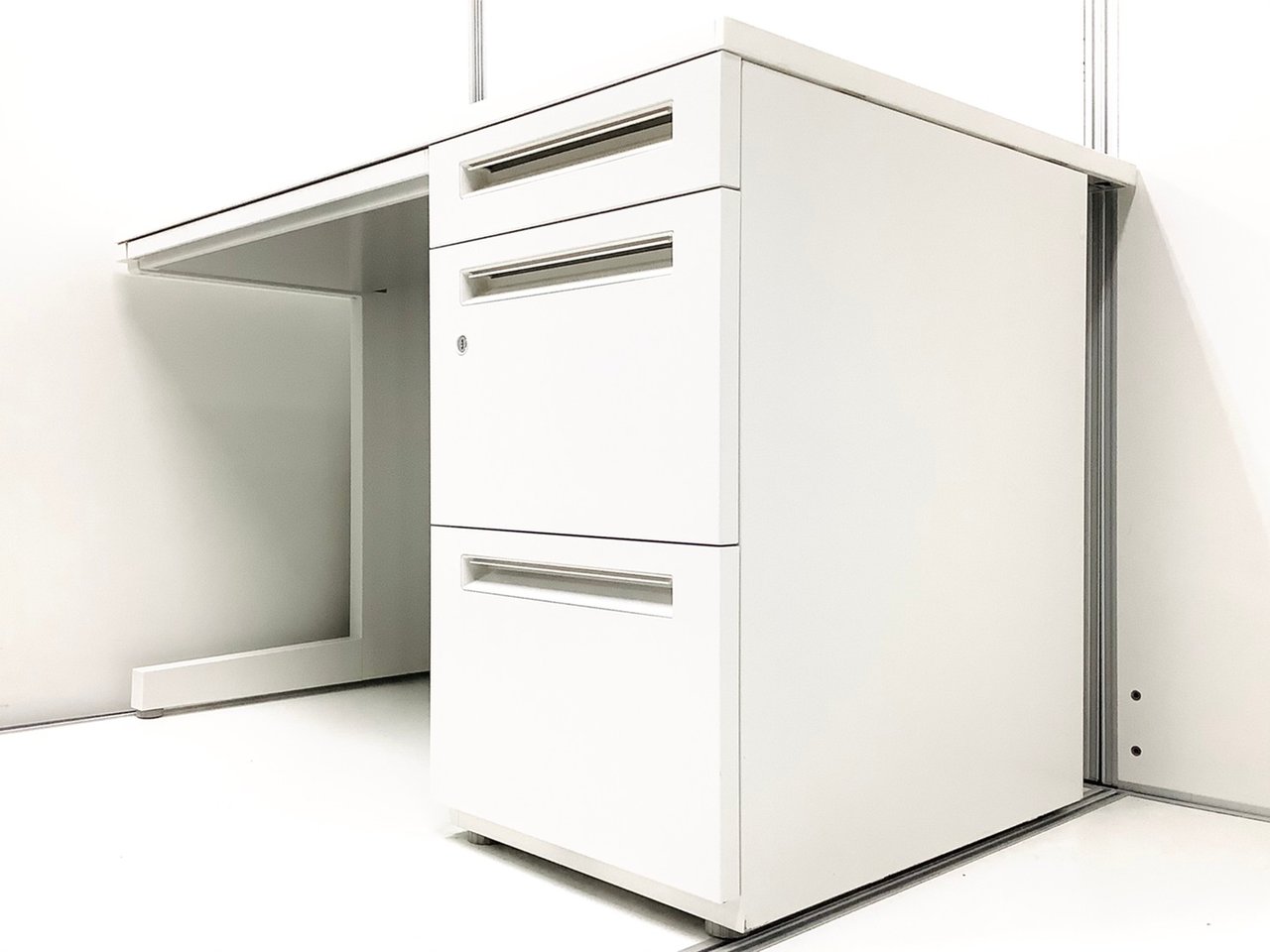 【引き出しつきデスクとワゴンの特別セット!】■内田洋行 スカエナシリーズ デスク+ワゴンセット ■横幅1200㎜×奥行き700 ■引き出しなし ■ホワイト 【中古でお得に買うなら品質の良いデスクを!】 ※ワゴンは在庫状況によって変動致します。