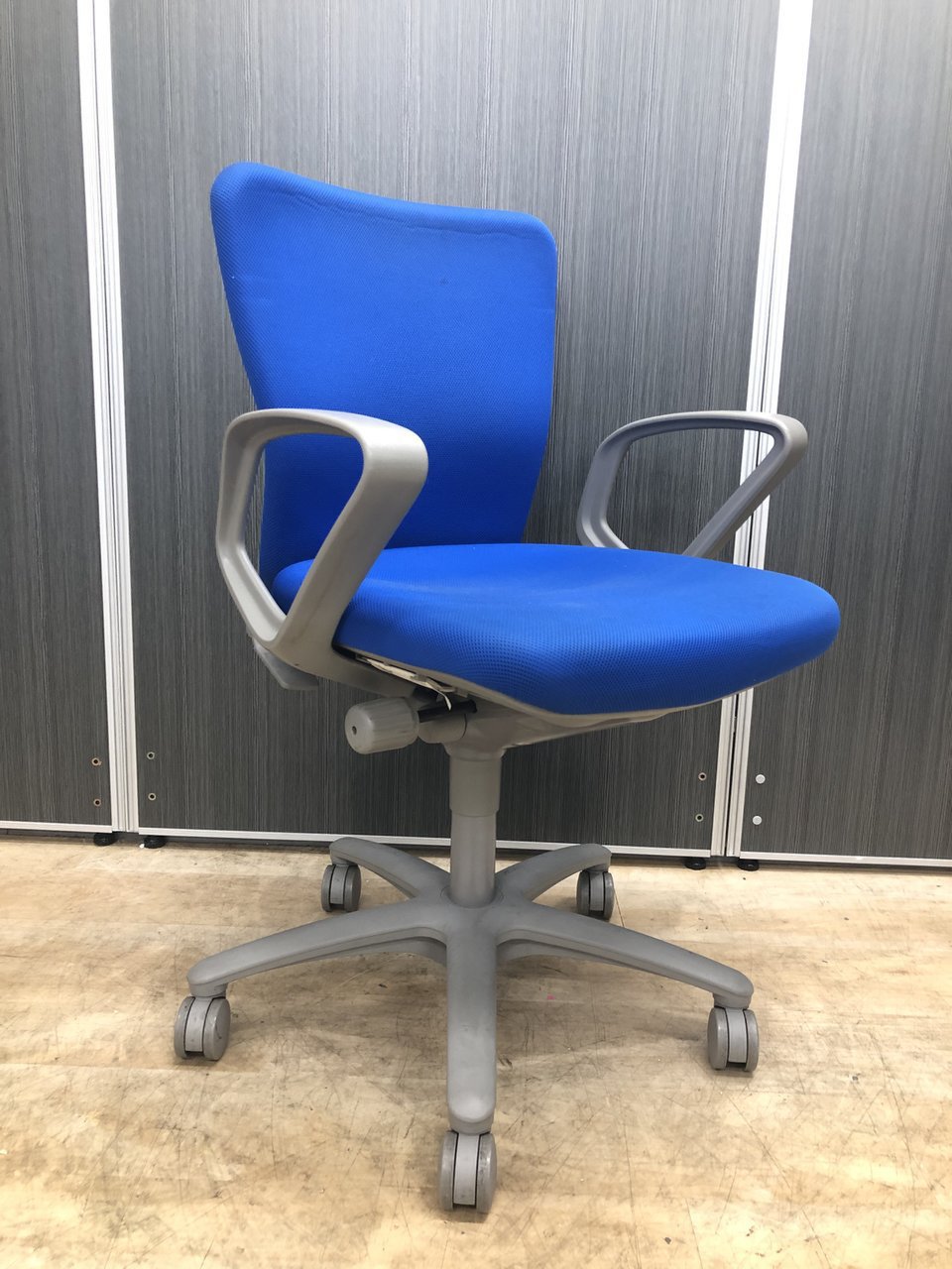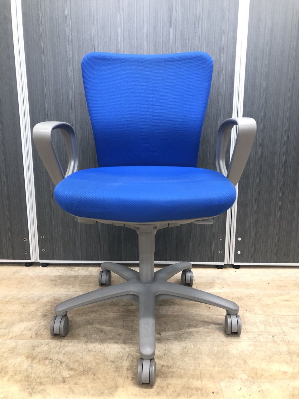 定番のオカムラ製のチェアが入荷!厚めのクッションで座り心地抜群! ■オカムラ/カロッツァ/ブルー ブラックシェル リング肘