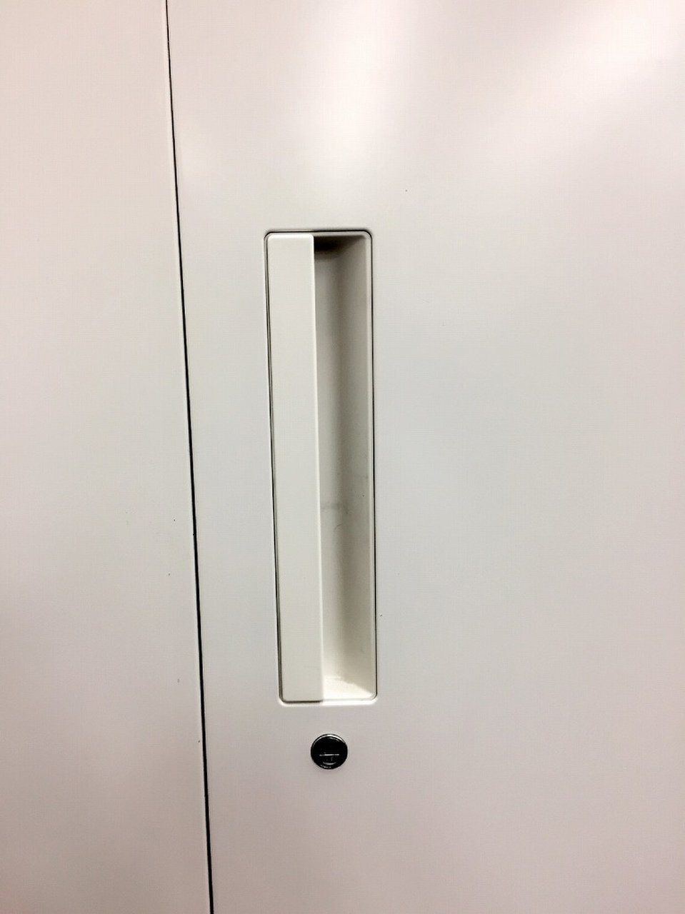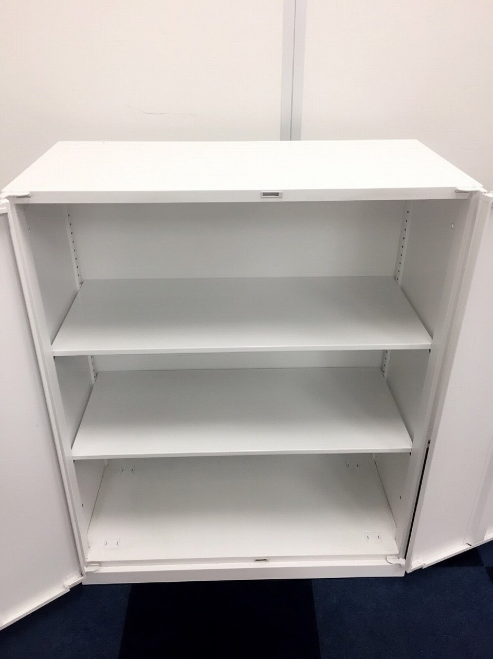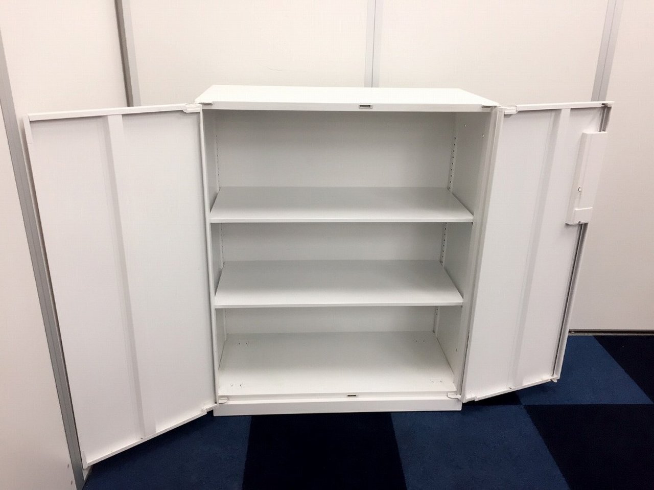 腰高サイズの両開き書庫入荷!取っ手が上部にあるので開けやすい構造です。|ホワイト|書棚 本棚 書類整理- 神戸・三宮店