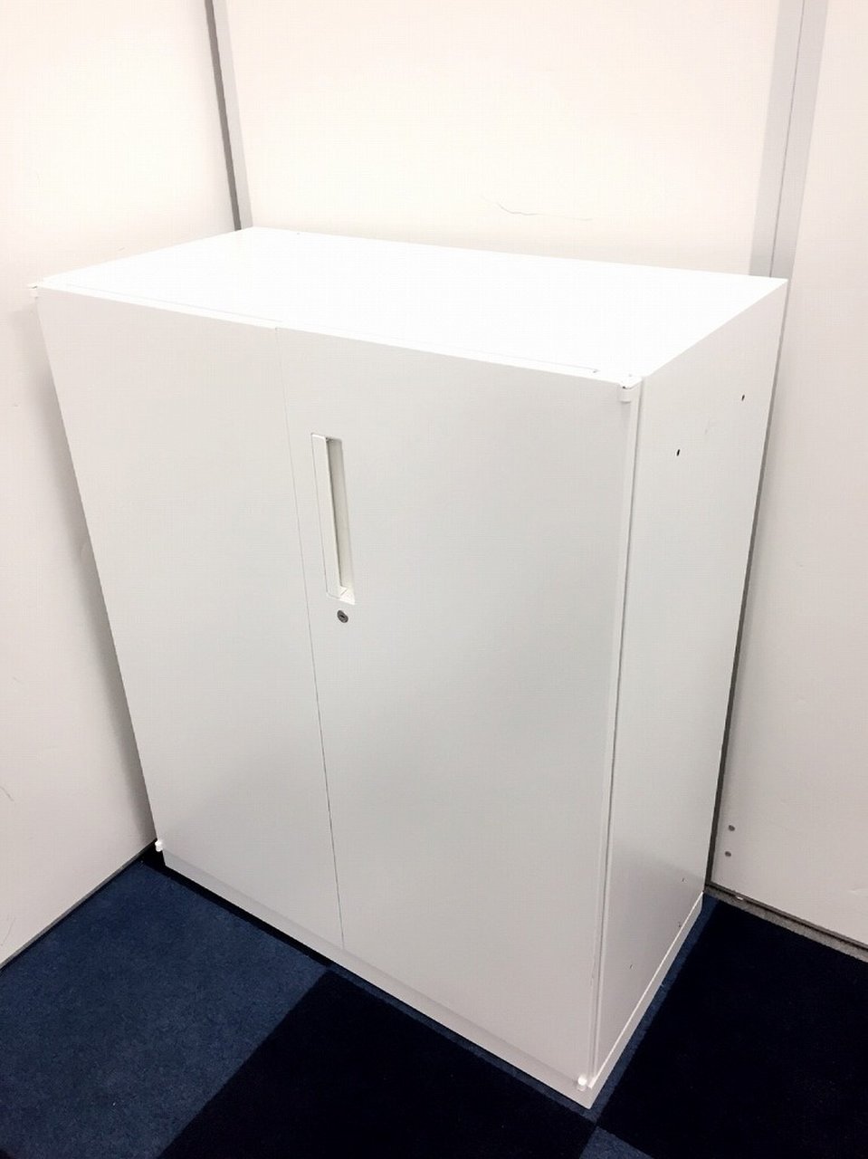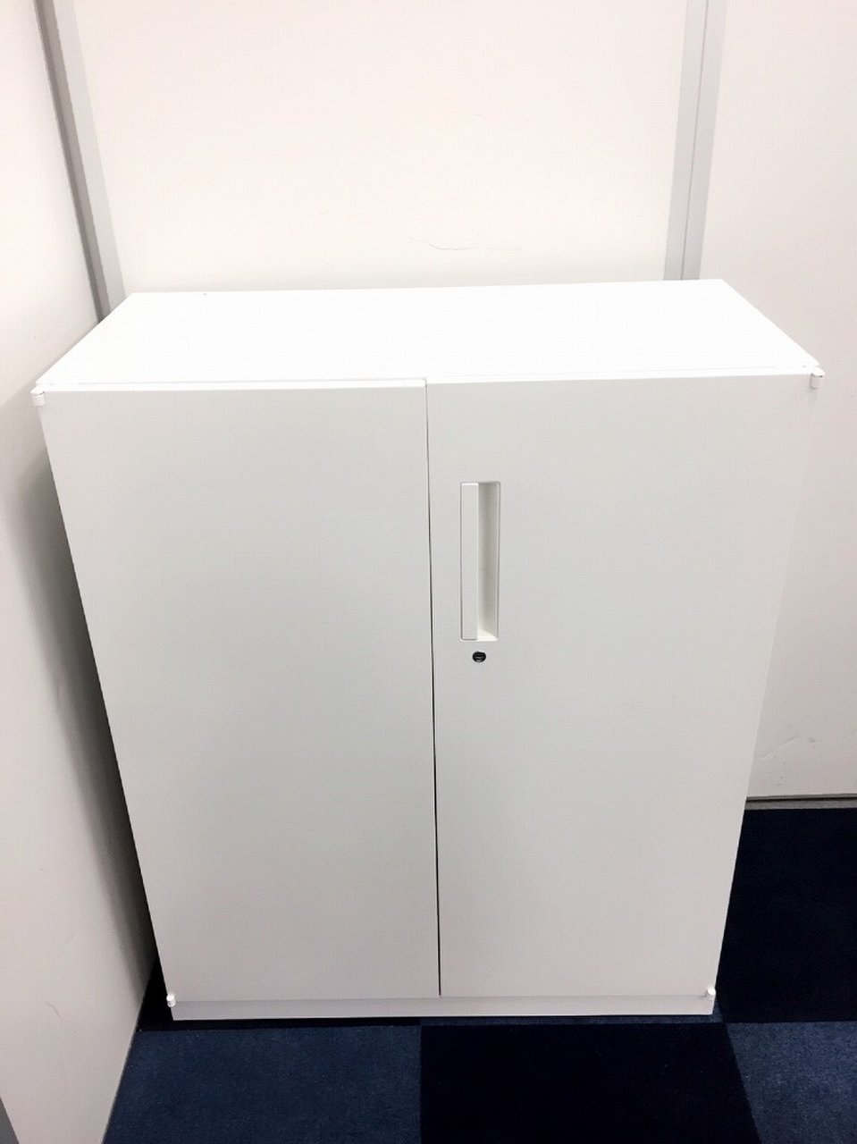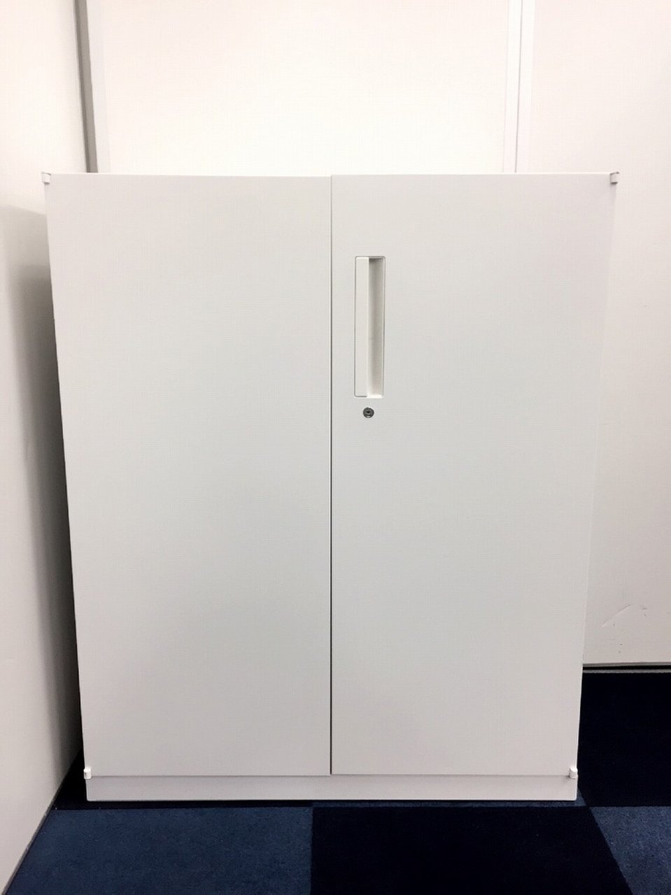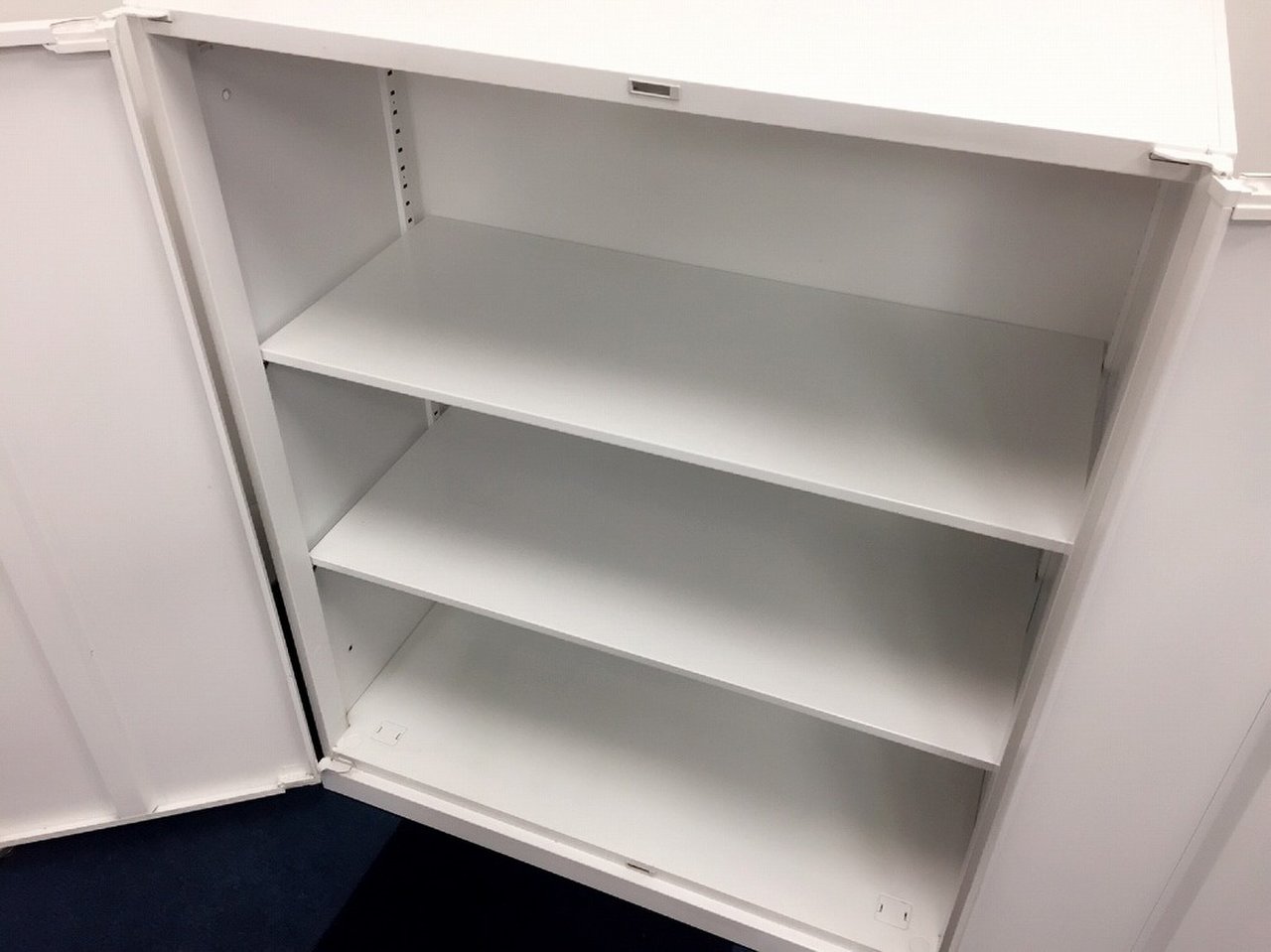 腰高サイズの両開き書庫入荷!取っ手が上部にあるので開けやすい構造です。|ホワイト|書棚 本棚 書類整理- 神戸・三宮店