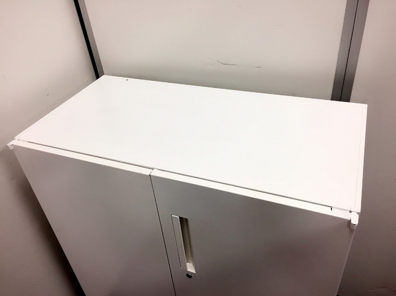 【定番の両開き書庫が入荷!書類の収納スペースを増やしたい方におすすめ!】■内田洋行(UCHIDA)製 ハイパーストレージ(HS)シリーズ 両開き書庫 ローキャビネット W900×D450㎜ ■ホワイト ■天板付 ■シリンダー錠 ■弊社使用欄【A01004990】【T12】