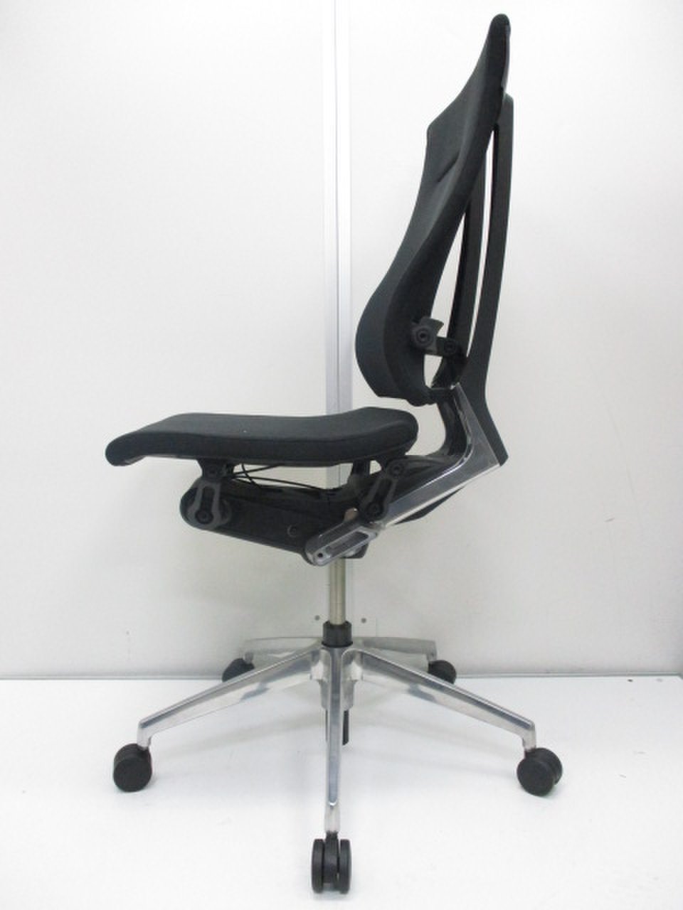 一番の特長は、着座時にチェアがピタっと体にフィットしてくれることです。 人がチェアの座り心地を調節するのではなく、チェアが人に合わせて動くのです!着座時に座面が沈み込みながら後方へスライドし、それと同時に背もたれの腰部分が前にせり出し、「ずっと座っていたくなる」と言われるほどの座り心地に調節してくれます。それを実現しているのが、A.L.S(アクティブ・ランバー・サポート)機構とP.S.S(パッシブ・スライド・シート)機構です。 さらに、背もたれにかかる体圧を徹底的に分析して作られた絶妙なカーブが、常に腰をサポートしつつ背骨のラインに沿ってくれます。