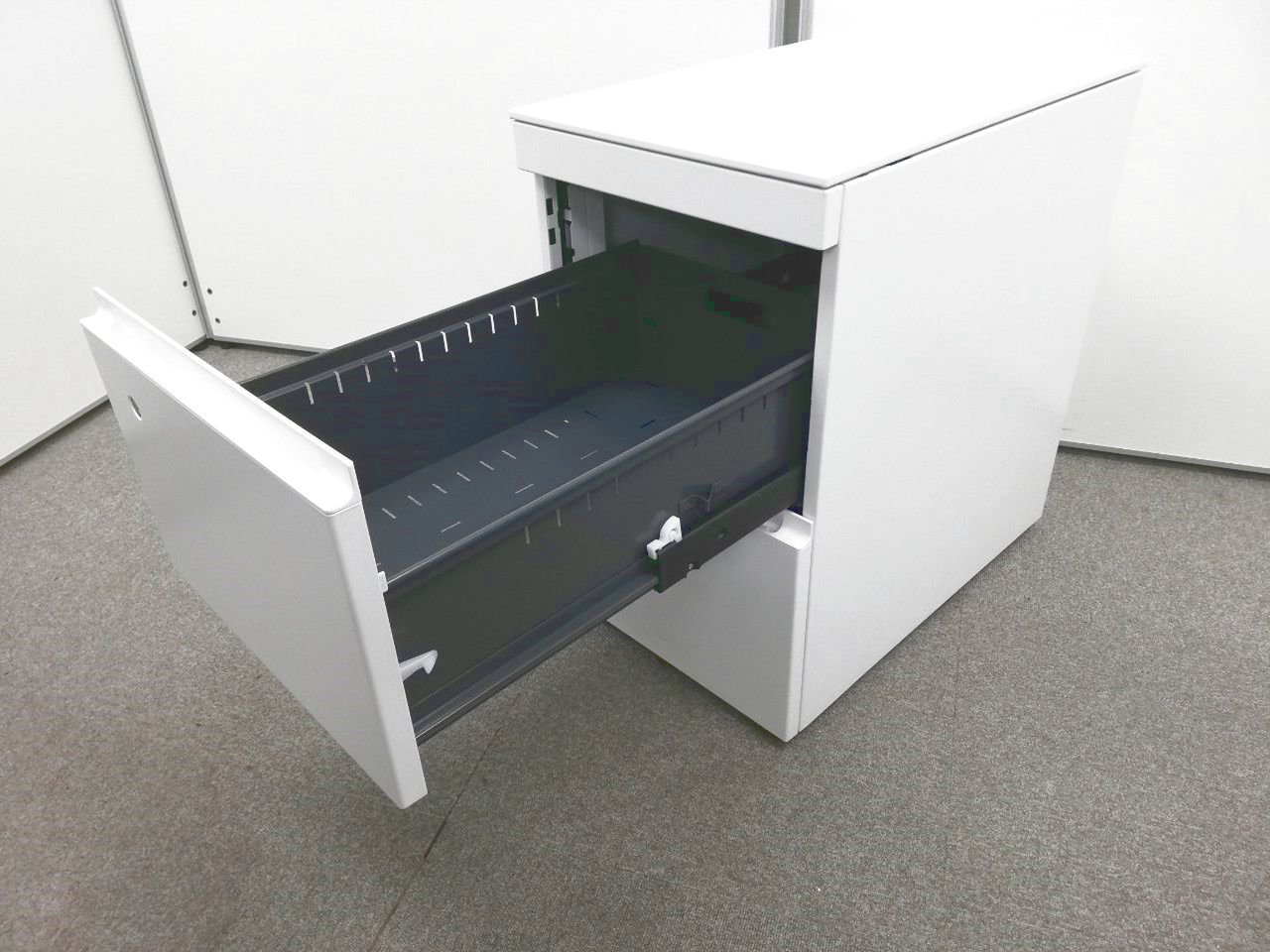 - 一部不具合ありその脇机・ワゴンの本来の効用を果たすための機能以外の一部が使用不可な状態。(例、引出が開閉しづらい、 キャスターロック機能使用不可、ラッチ不良 等がある。)