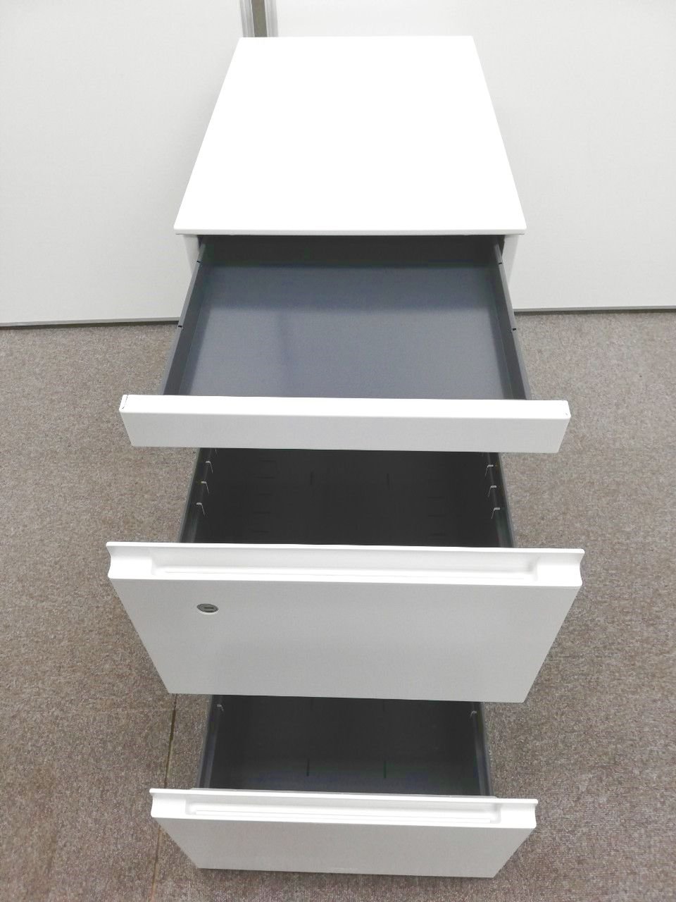 最上段はペントレー引き出し付き、2段目・3段目はA4サイズのファイル書類が収納できます。