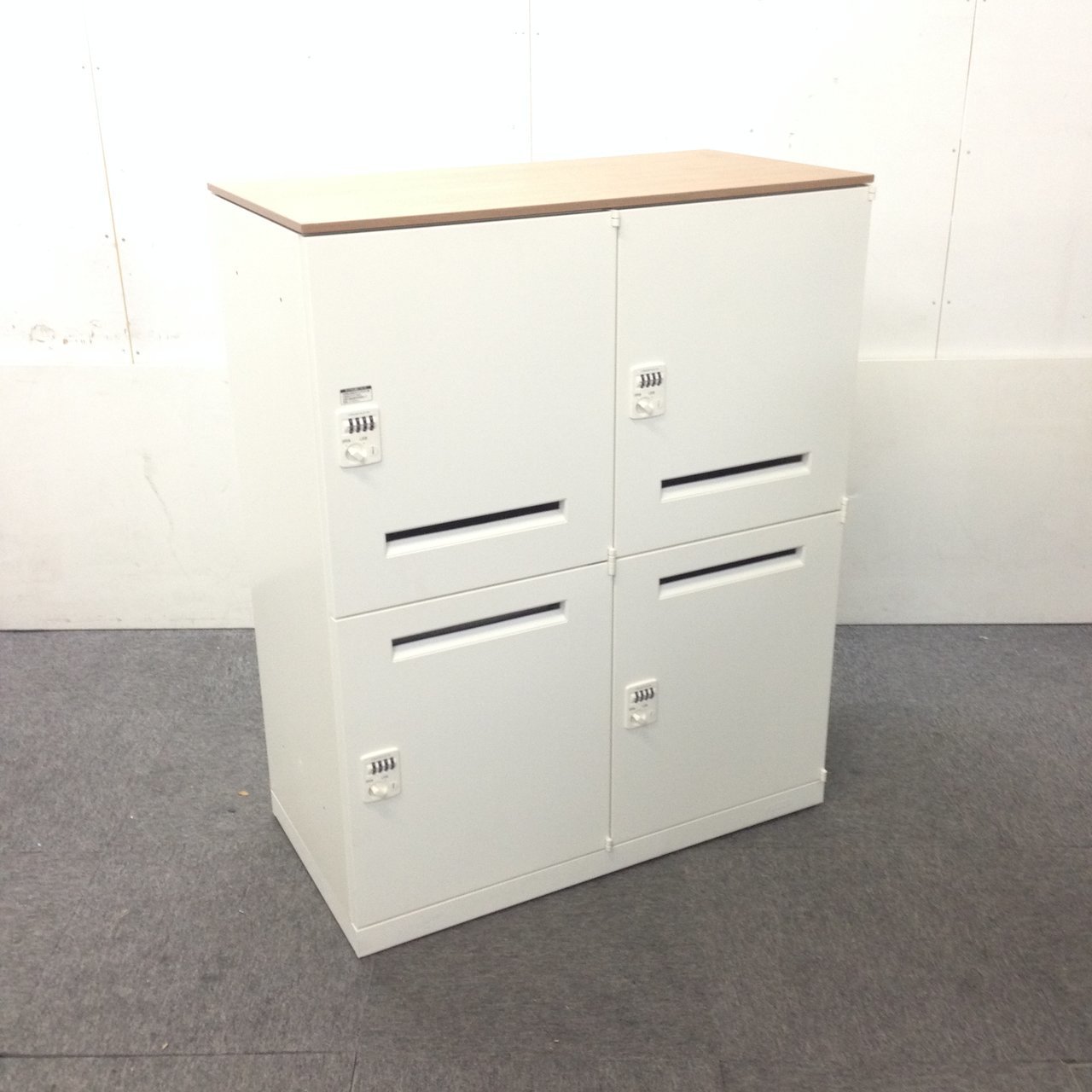 【モバイルワーカーにおすすめ!】■オカムラ製 4人用パーソナルロッカー メールボックス付 ダイヤル錠【ナチュラル天板タイプ】- 川崎店