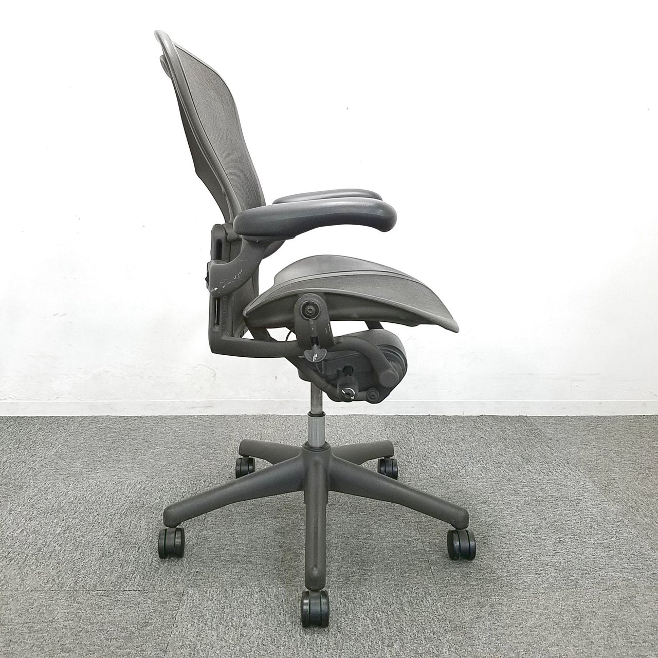 【★肘と脚にスレあり!見た目を気にしなければ使用に問題なし★】ハーマンミラー製 アーロンチェア(スタンダードタイプ) メッシュ 在宅 自宅 ゲーム 海外製 椅子 リラックス 中古家具 中古オフィス 九州最大級《オフィスバスターズ福岡博多店は、福岡を拠点として、日本全国へ中古オフィス用品・オフィス家具を提供しております》