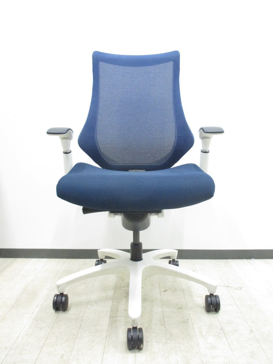 【包み込まれるフィット感!】 ■イトーキ製 エフチェア 肘付 ネイビーブルー ■デスクワークの疲労を軽減!