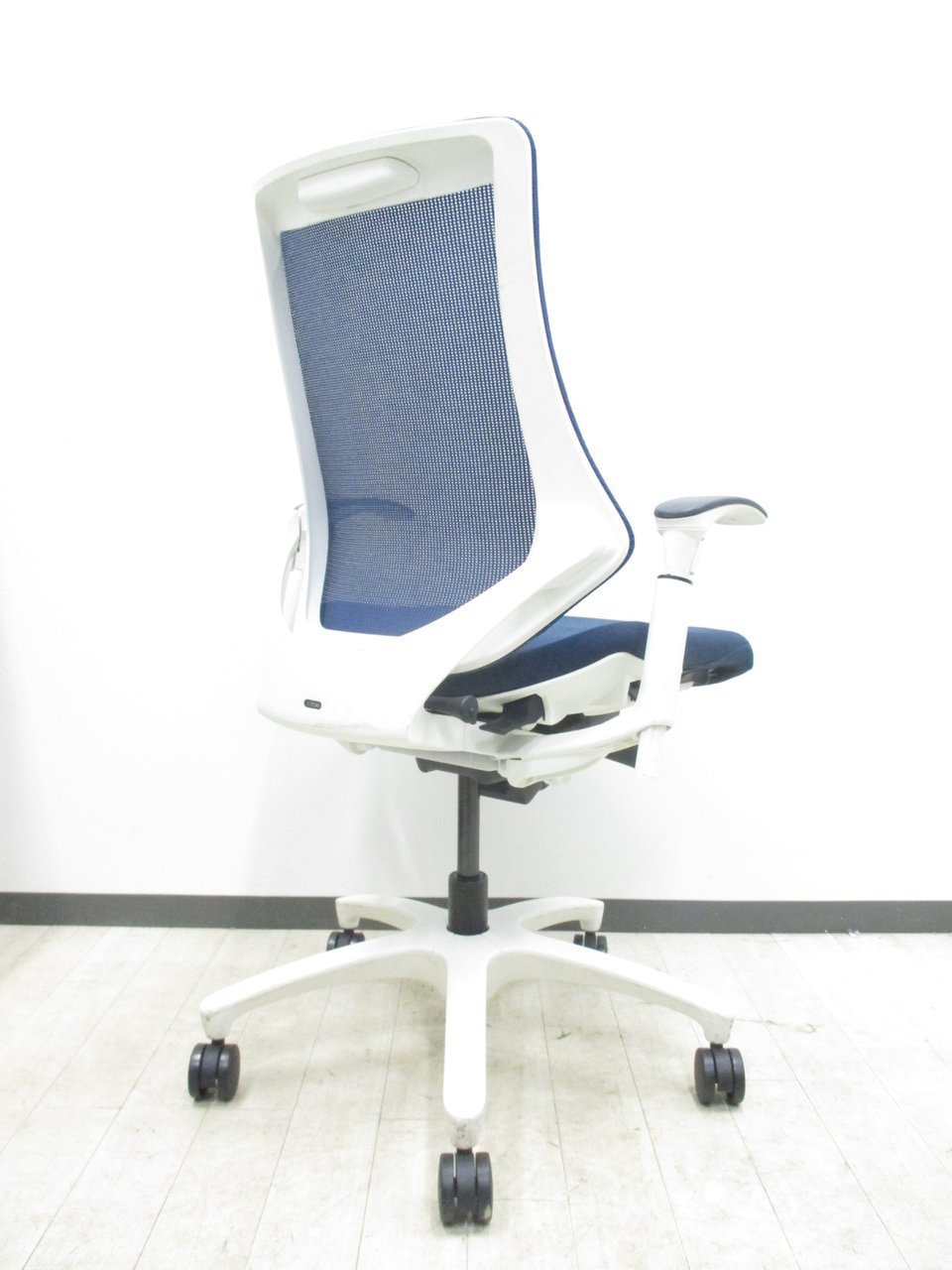【在庫入替セール品!】【姿勢の変化にフレキシブルに対応!】■イトーキ エフチェア 可動肘付 ネイビーブルー ハンガー付 ■三次元フォルムが腰にフィット!