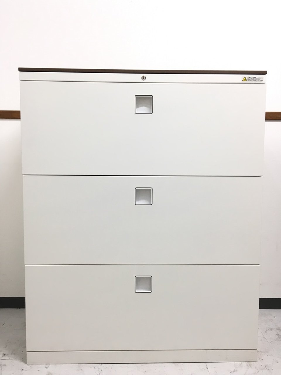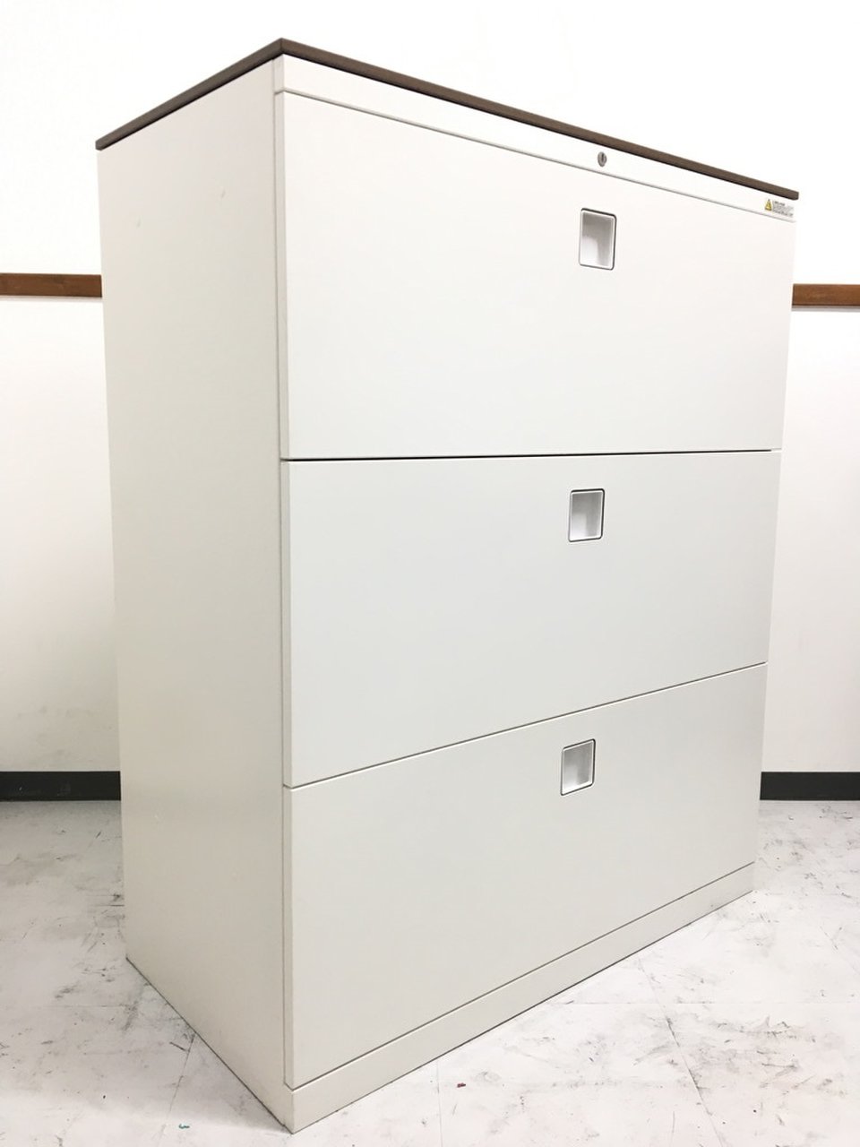 【使いやすさで選ぶならコレ!大容量の三段キャビネット】■オカムラ(Okamura)製 レクトラインシリーズ(Rectline) 3段ラテラル書庫 ローキャビネット ■天板付き ■シリンダー錠【IB】