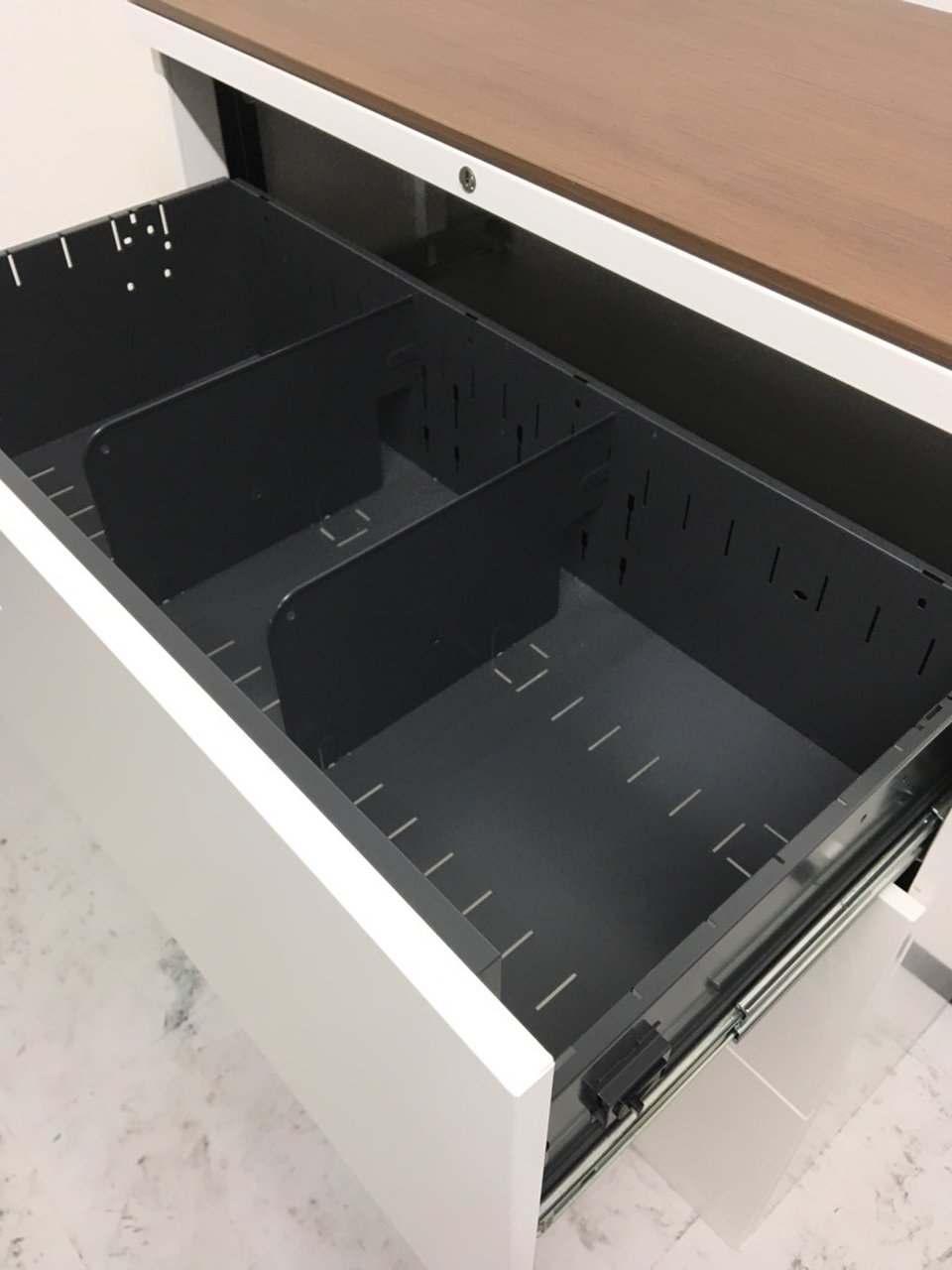 【使いやすさで選ぶならコレ!大容量の三段キャビネット】■オカムラ(Okamura)製 レクトラインシリーズ(Rectline) 3段ラテラル書庫 ローキャビネット ■天板付き ■シリンダー錠 ■ホワイト