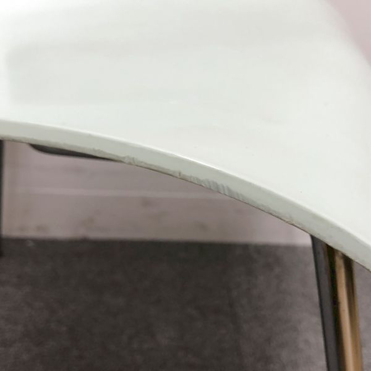 - かなり強い濃い黄ばみ・変色が商品全体にある。(例、座面・背もたれ、脚部等にある。)
