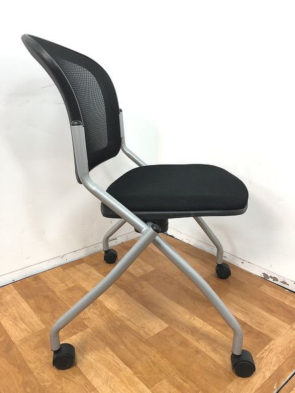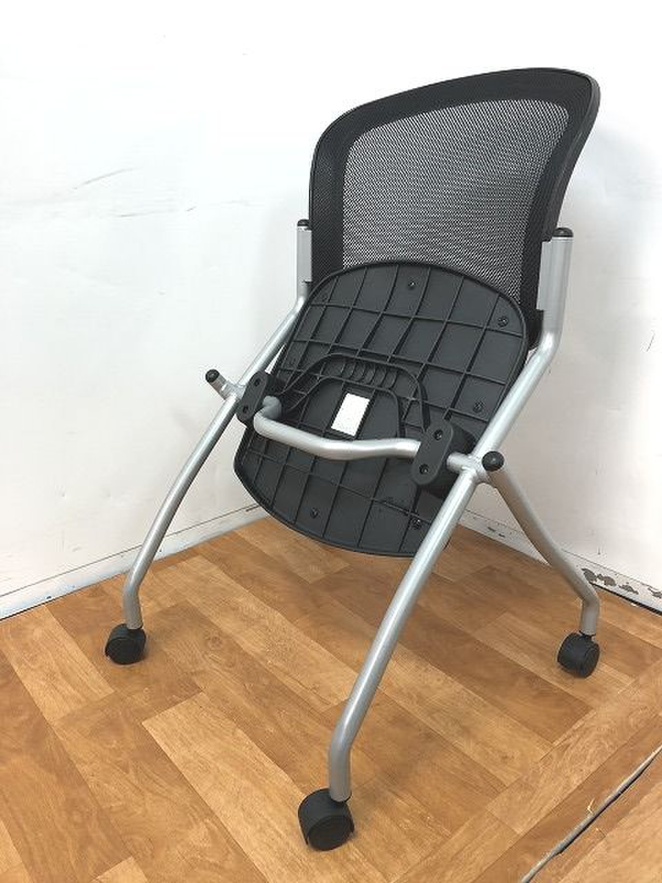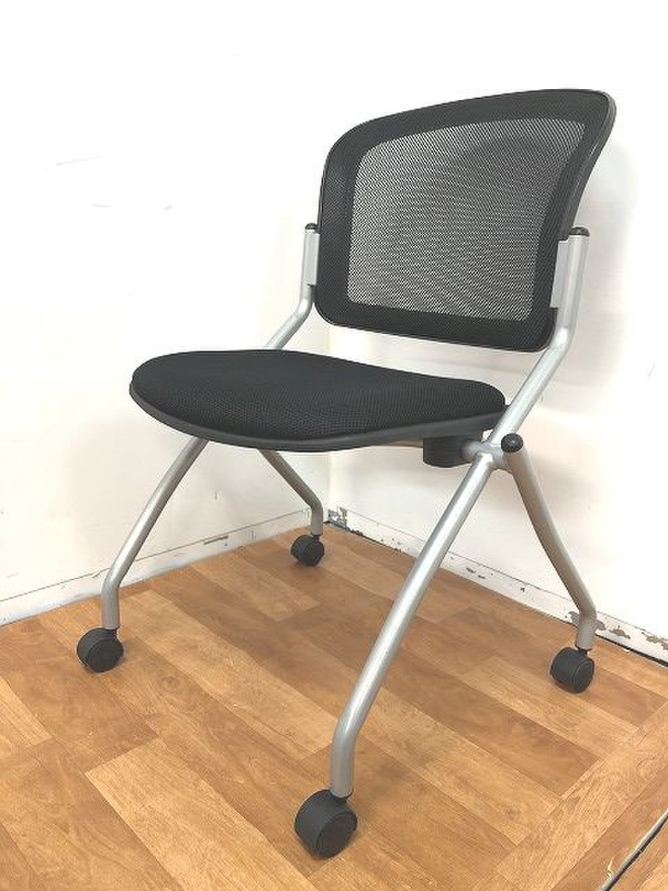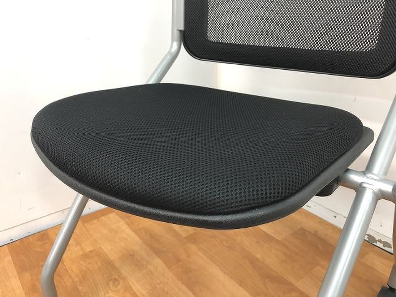 【KS】【コスパ最強メッシュミーティングチェア!】 座面が折りたためて省スペースなネスティングタイプ!- 茨城南店